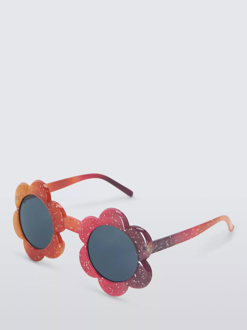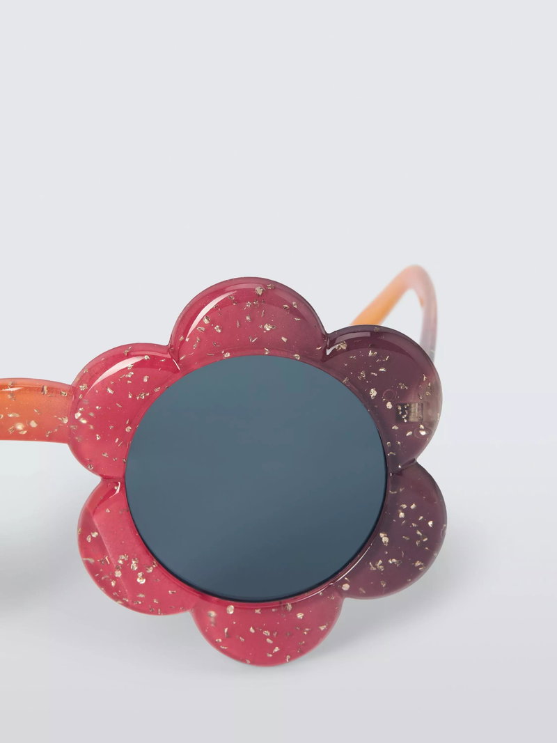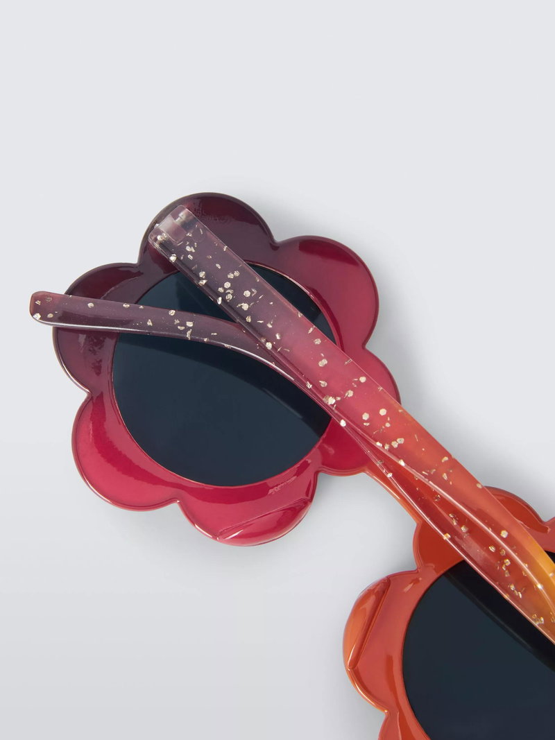 Round sunglasses with flower-shaped frames, speckled with glitter.
