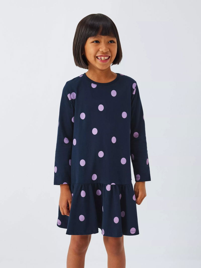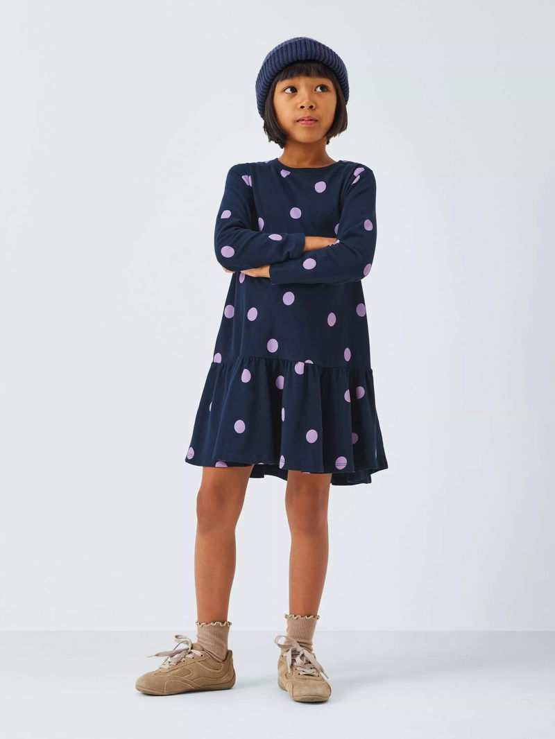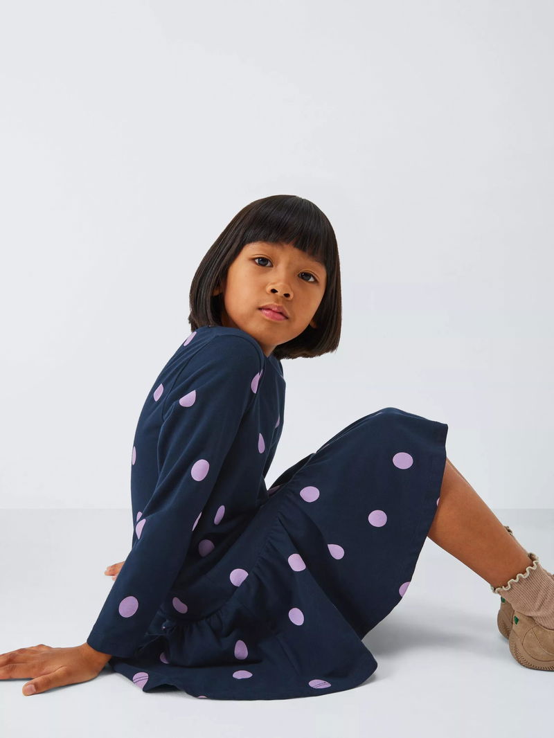 Kids' Polka Dot Jersey Dress, Navy, Purple