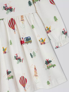 Kids' Rabbit Print Long Sleeve Dress, Pink/Multi