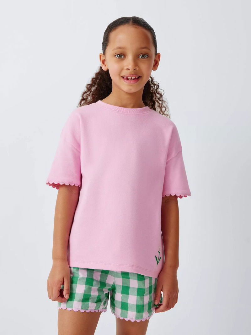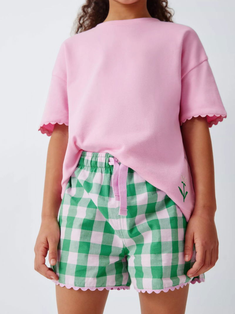 Kids' Scalloped Gingham Short Pyjamas, Pink