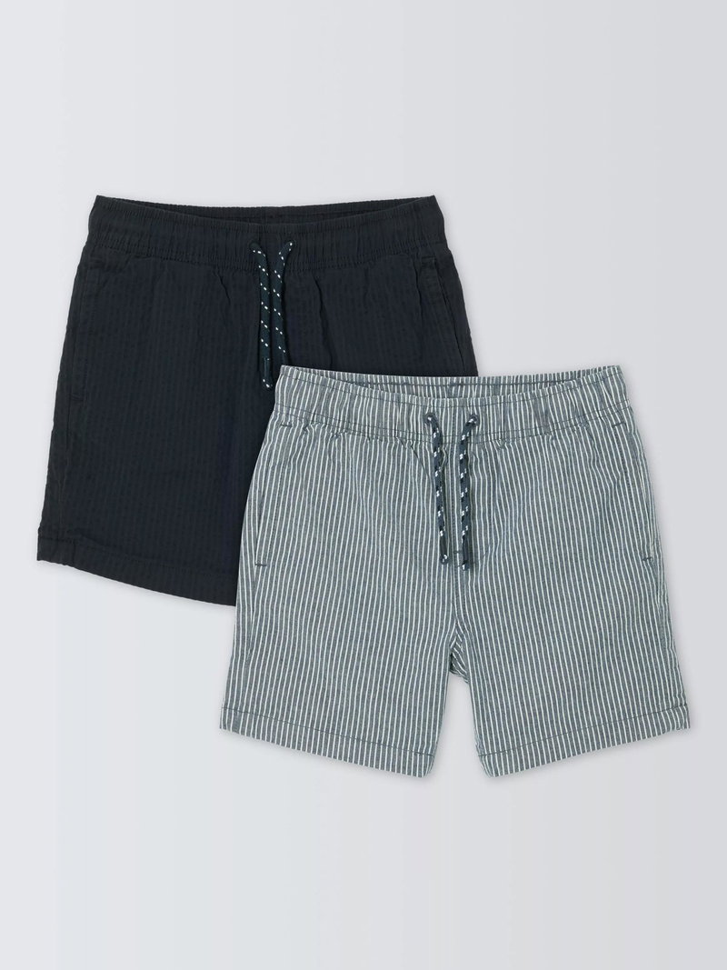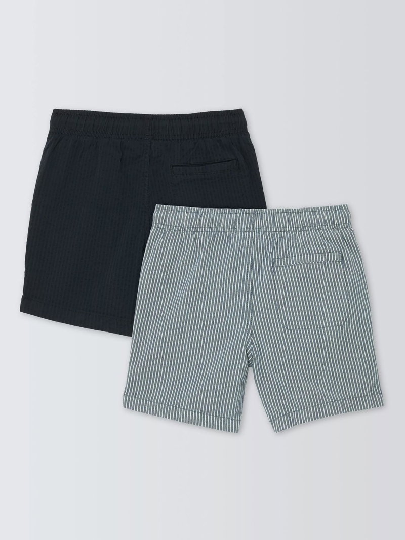 Kids' Seersucker Cotton Shorts, Pack Of 2, Navy/Blue