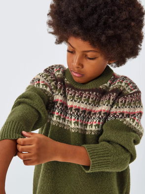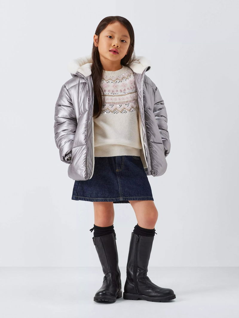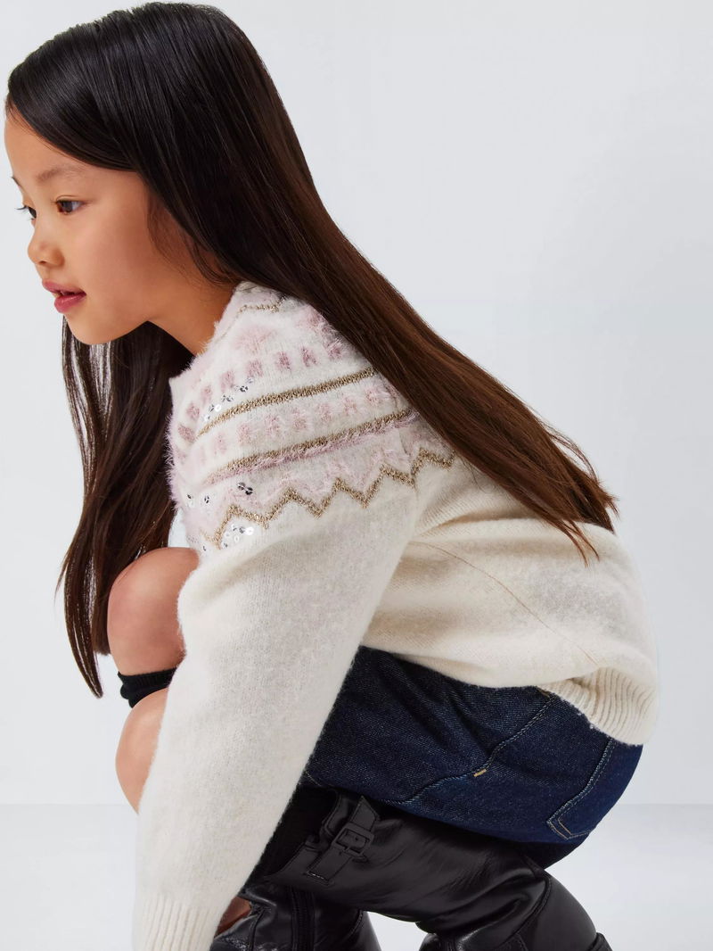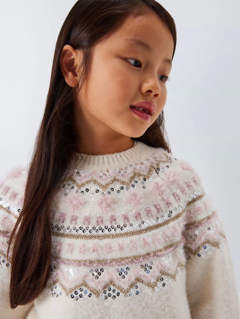 Kids' Sequin Fair Isle Jumper, Pink, Cream, White