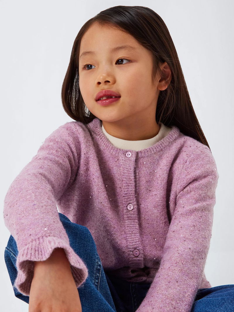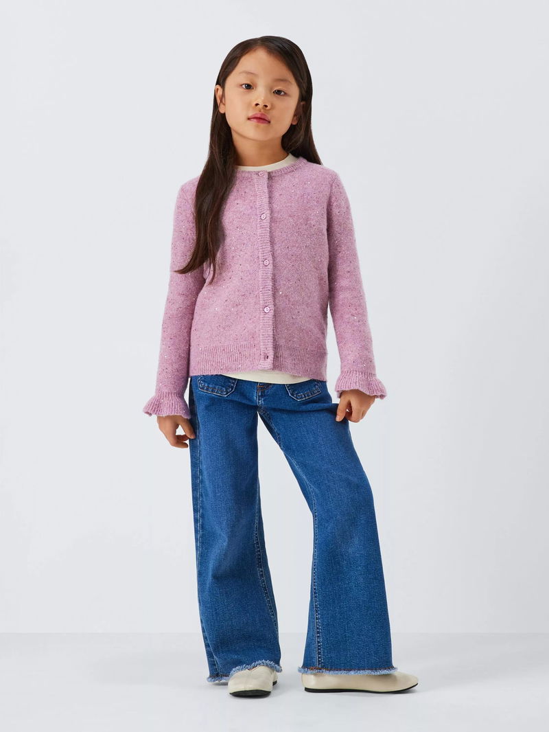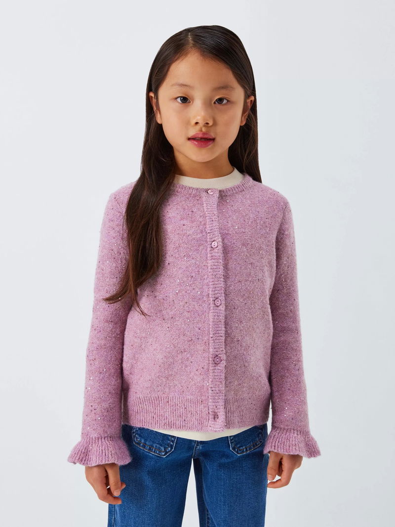 Kids' Sequin Frill Cuff Cardigan, Pink