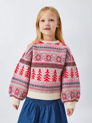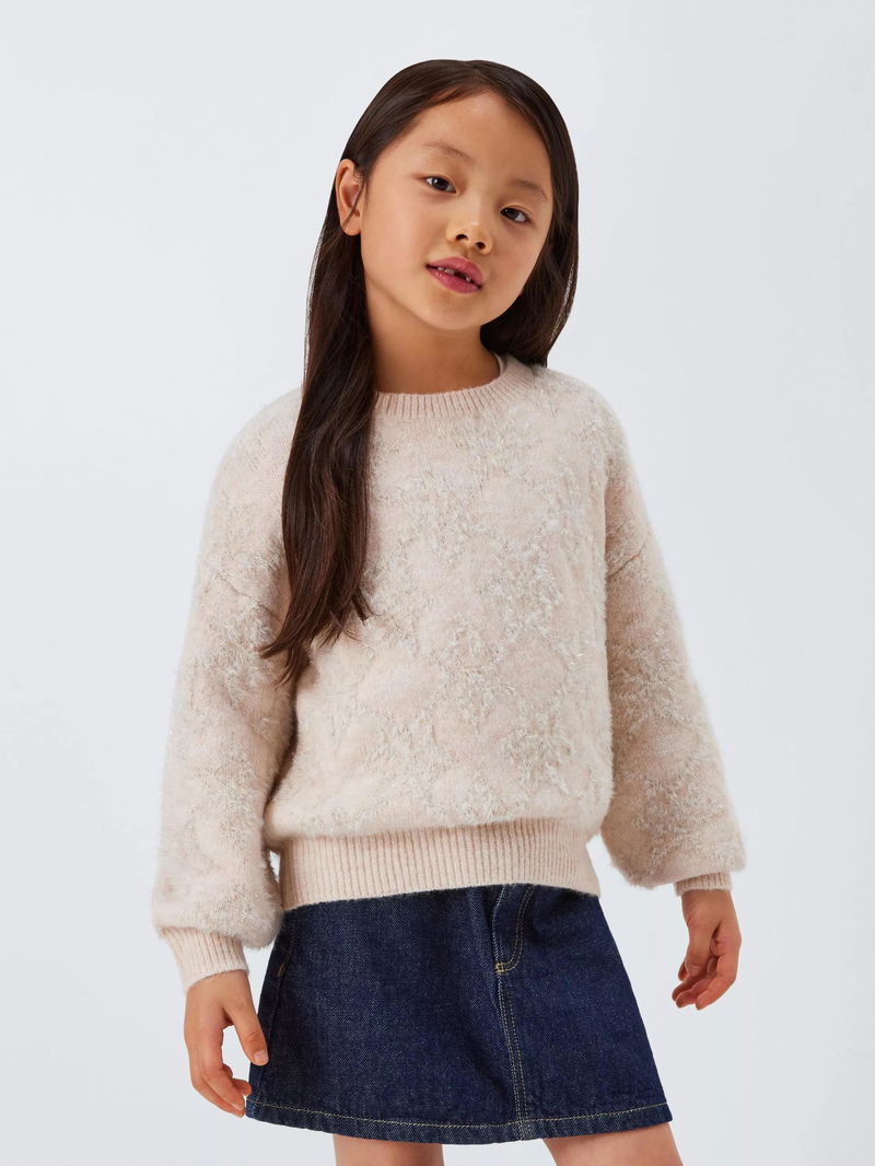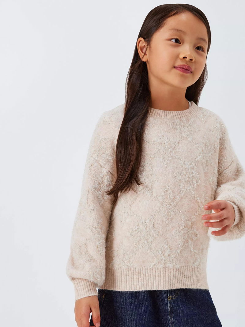 Kids' Snowflake Puff Sleeve Jumper, Crfeam, Silver