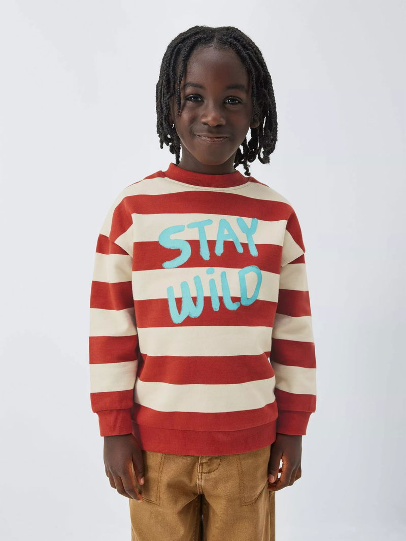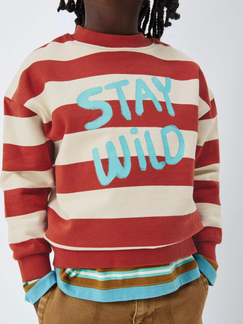 Kids' Stay Wild Stripe Sweatshirt, Rust/Cream