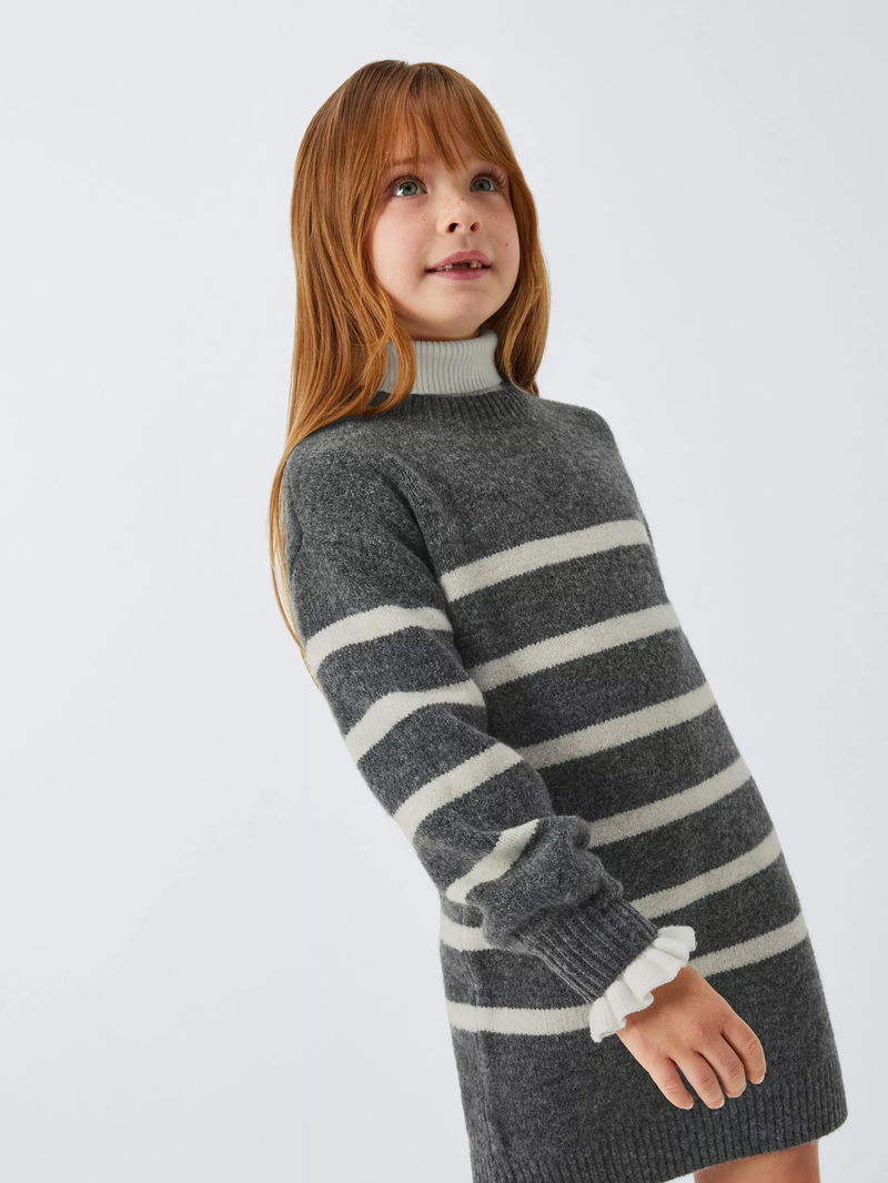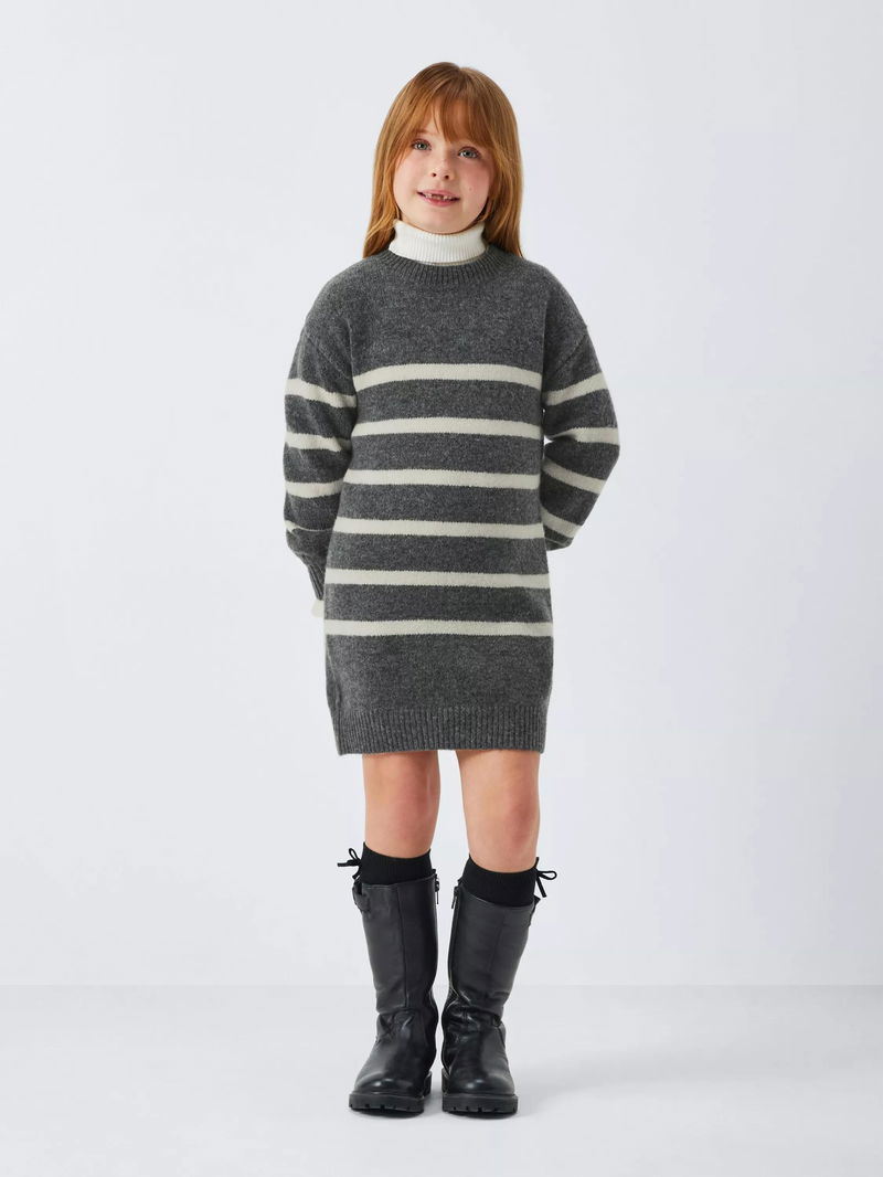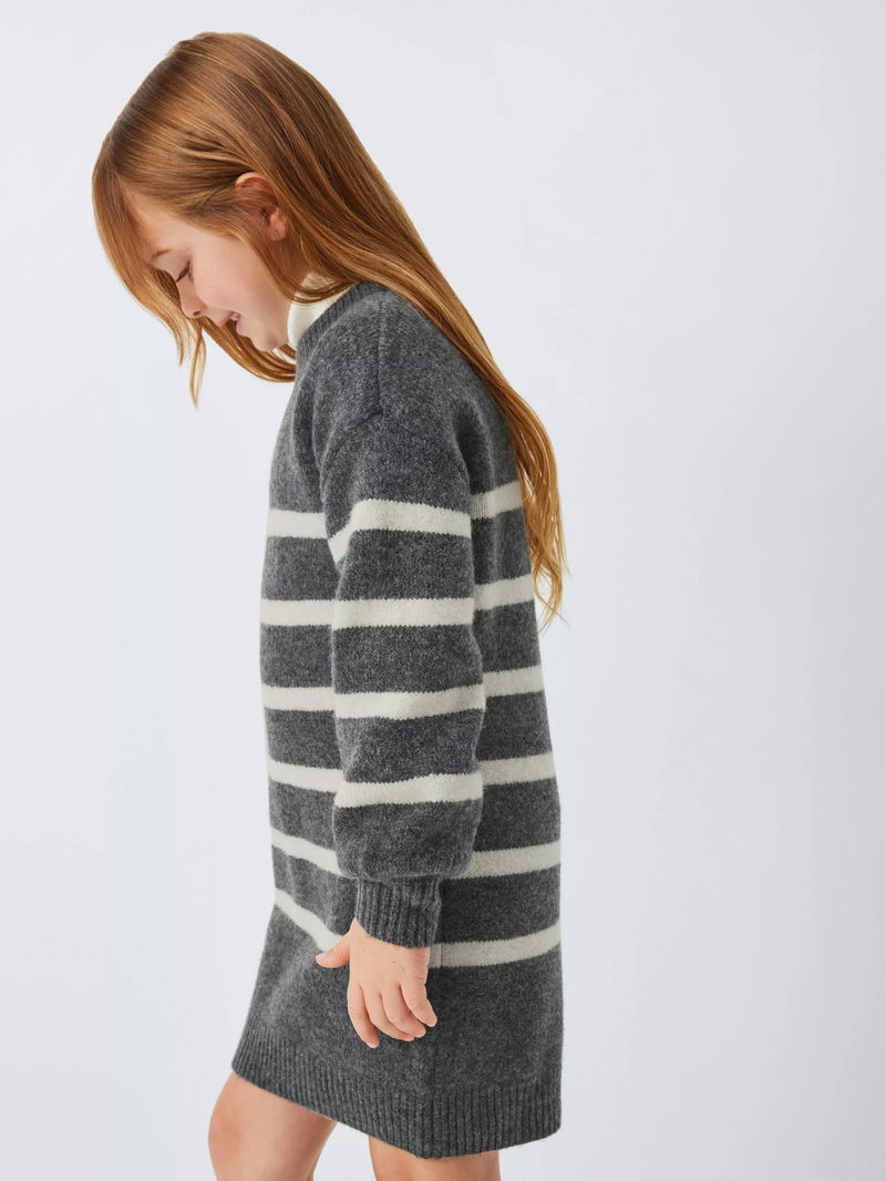 Kids' Stripe Knit Jumper Dress, Grey Stripe