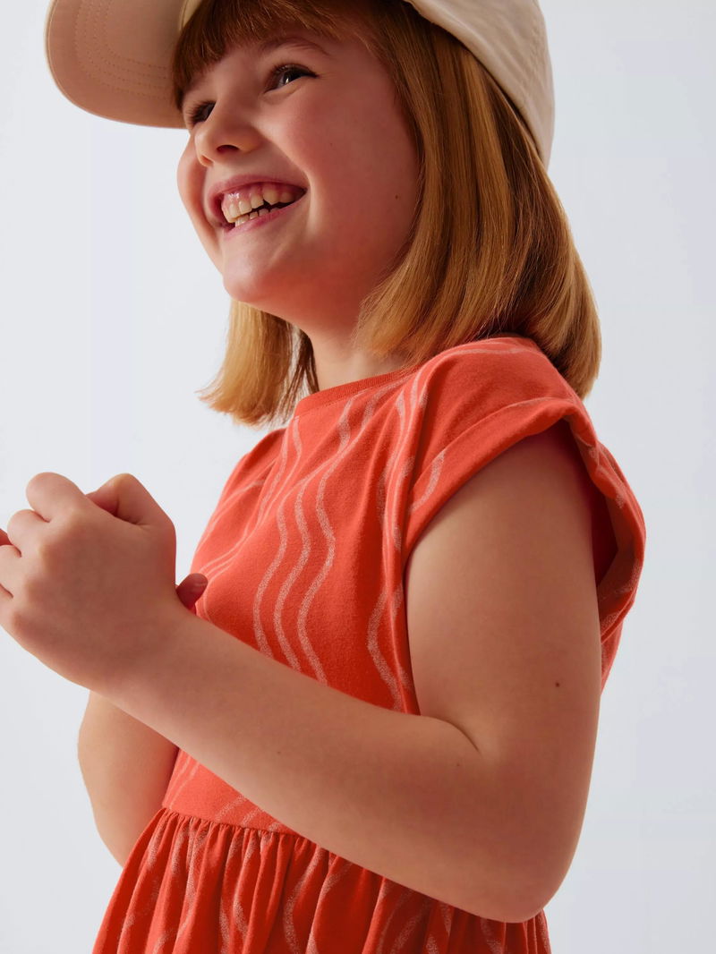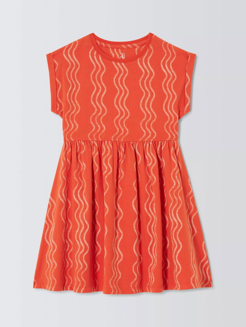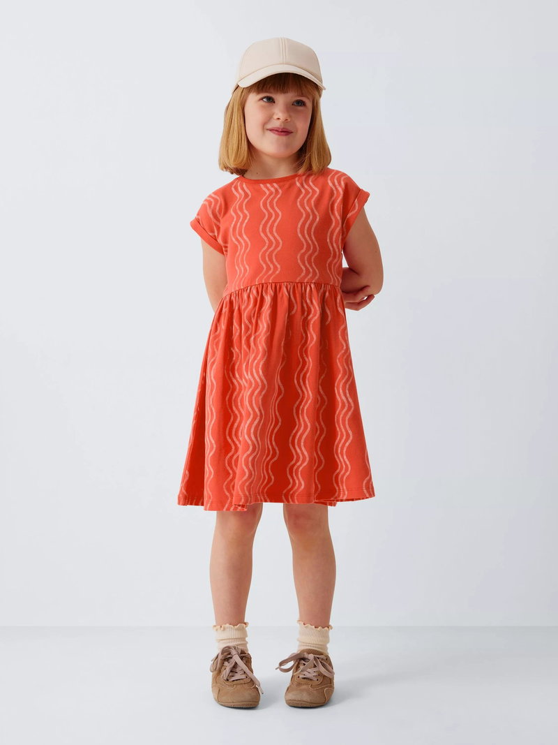 Kids' Wavy Jersey Dress, Navy, White