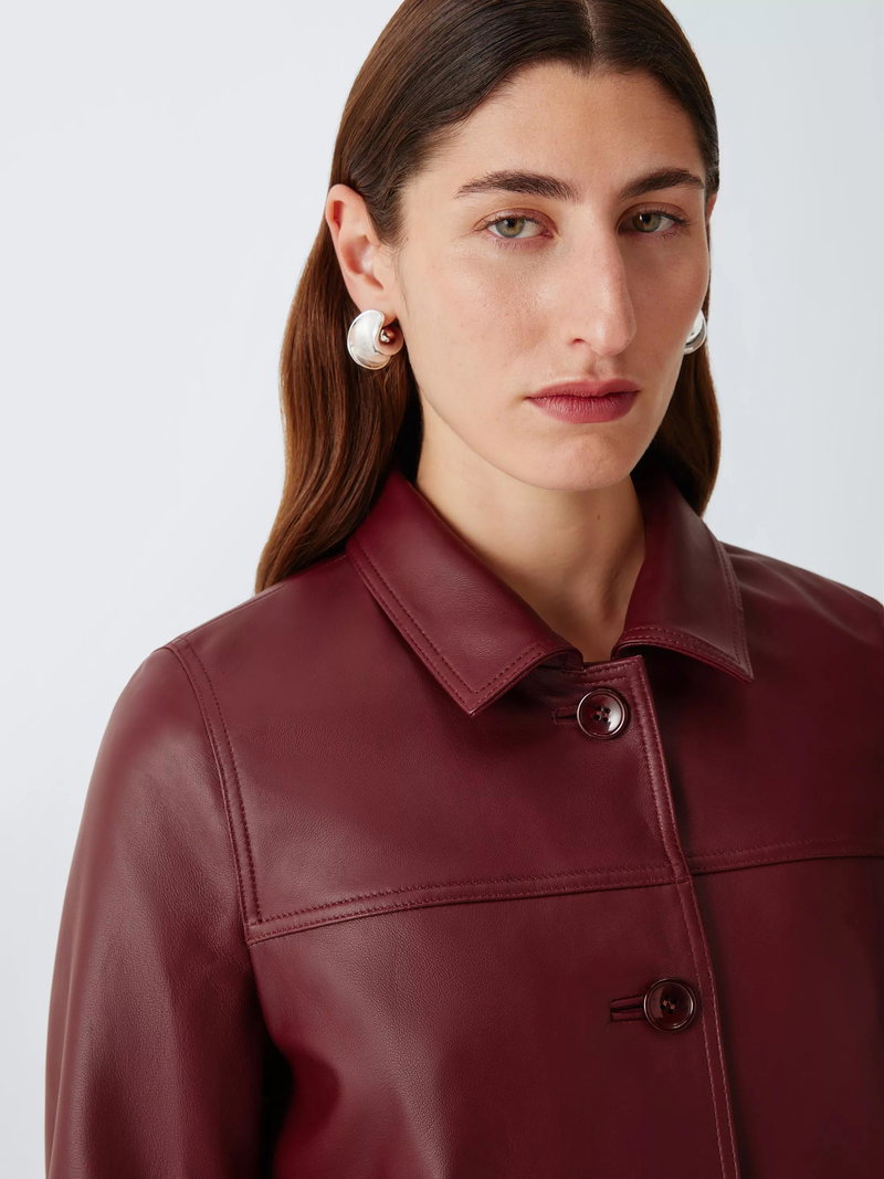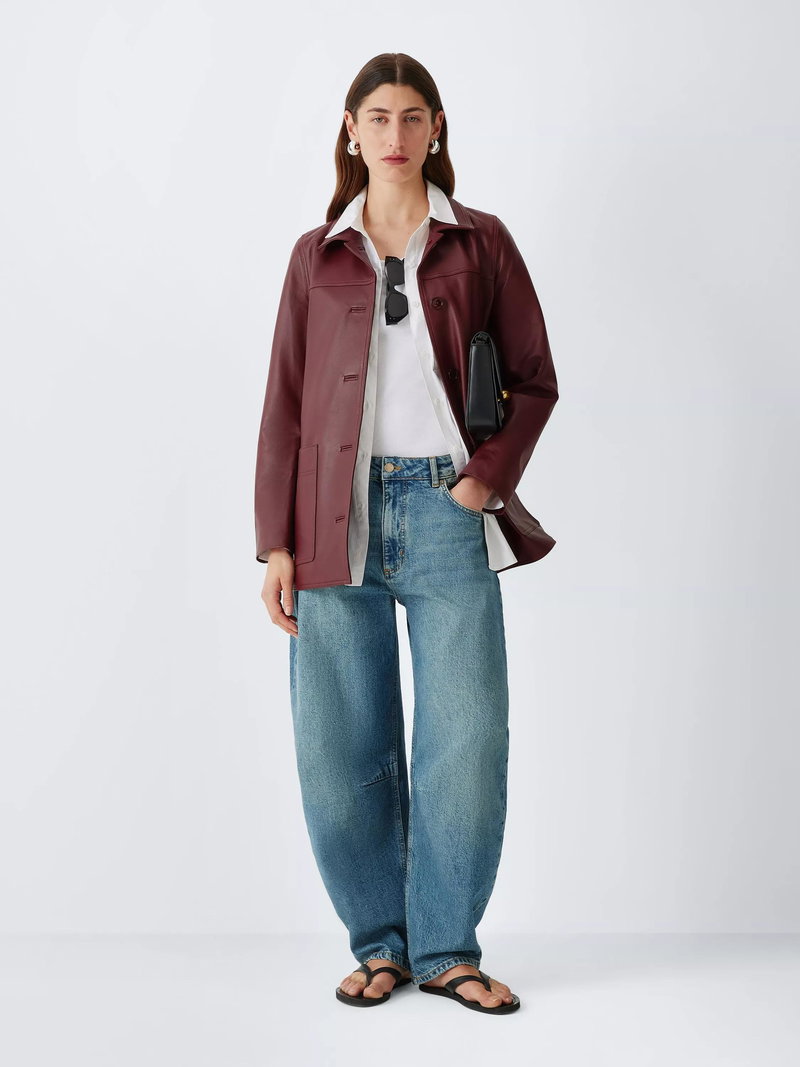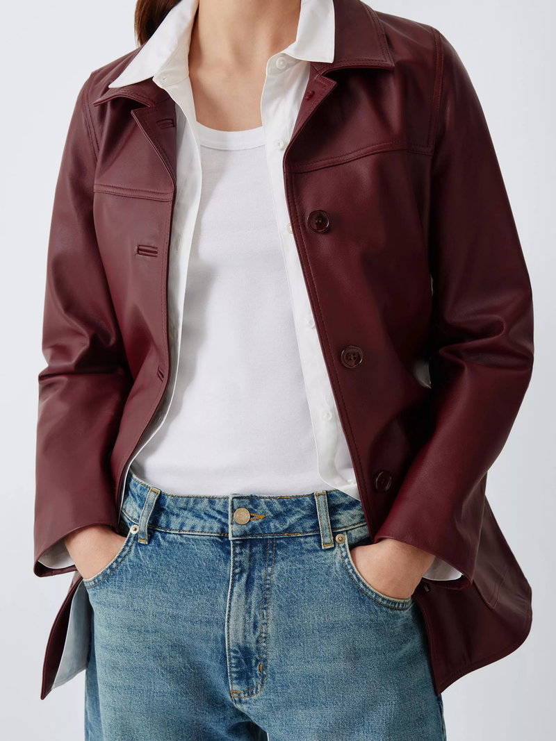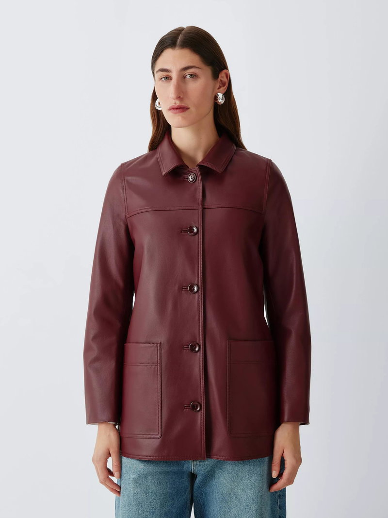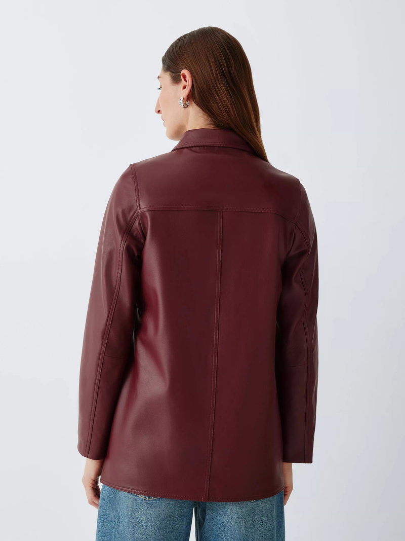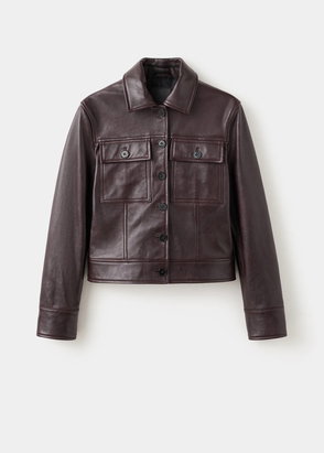 Utility meets luxury in this reimagined chore jacket, fully lined and crafted from soft leather to ensure the structured silhouette holds its shape while offering a supple, premium feel. The chest seam and oversized patch pockets provide a modern nod to heritage workwear. A confident choice for effortless layering, designed to bring a sharp, tactile edge to your seasonal wardrobe.