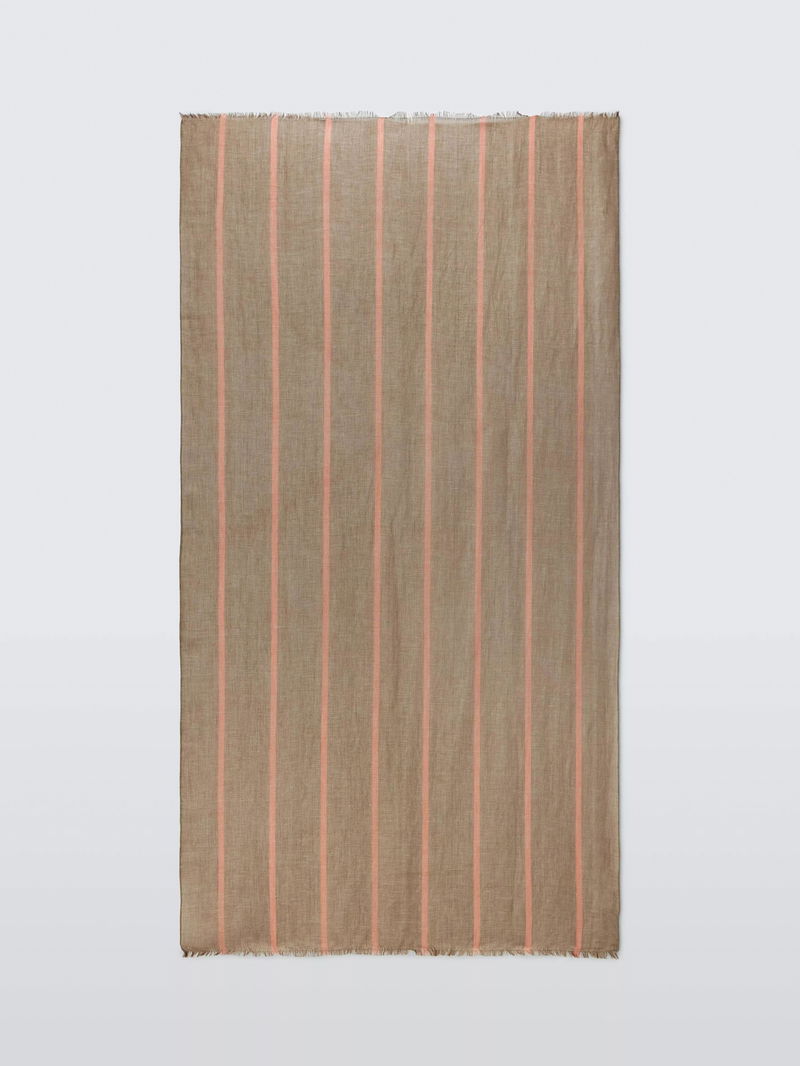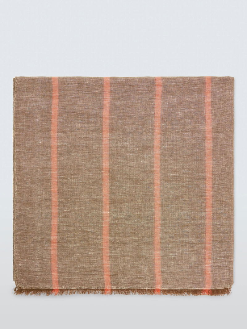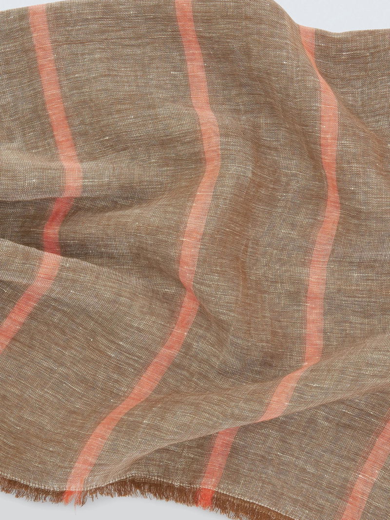 Linen & Cotton Blend Stripe Scarf, Brown/Orange
