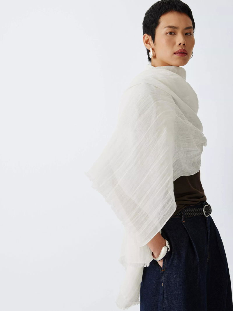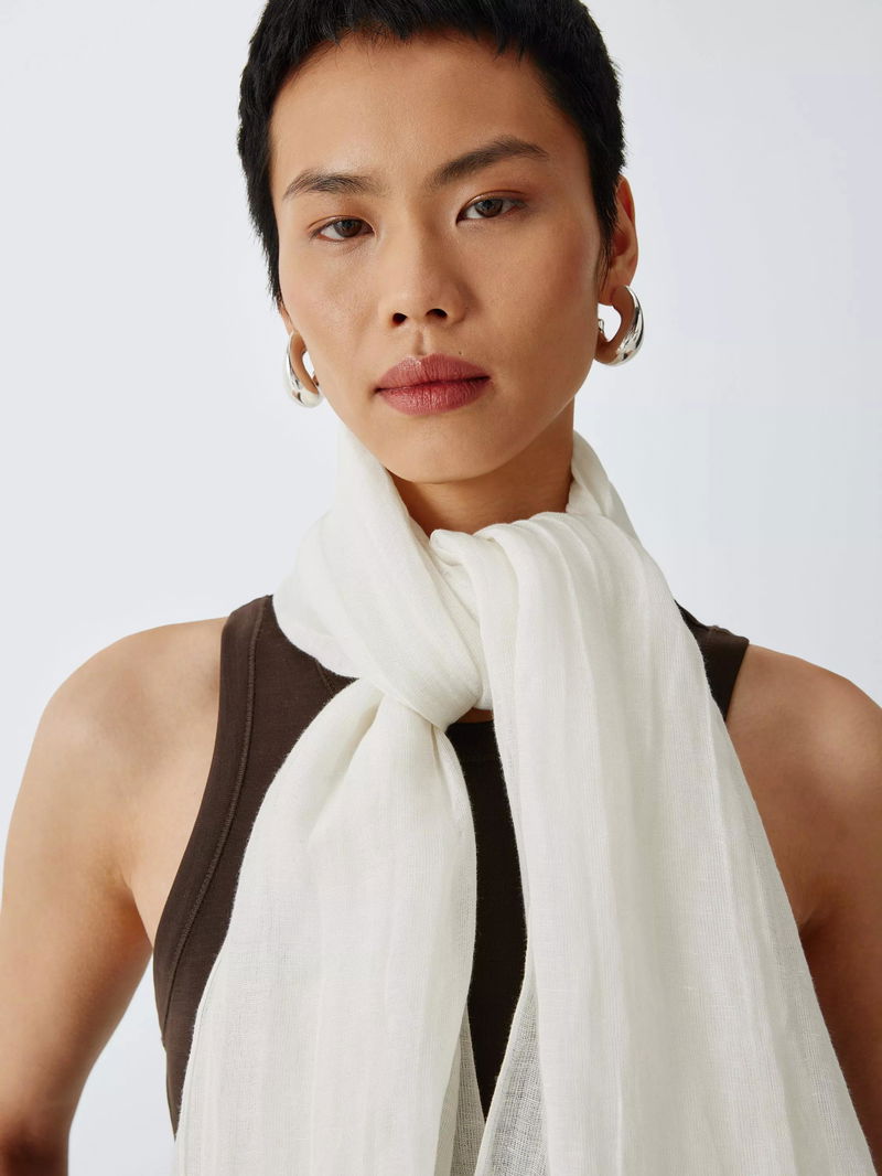 A simple scarf made from equal parts linen and cotton for lightweight softness.