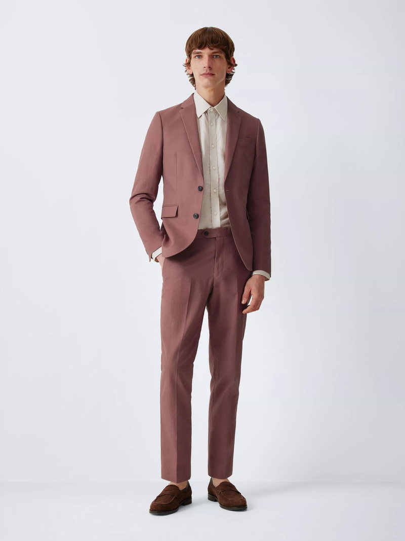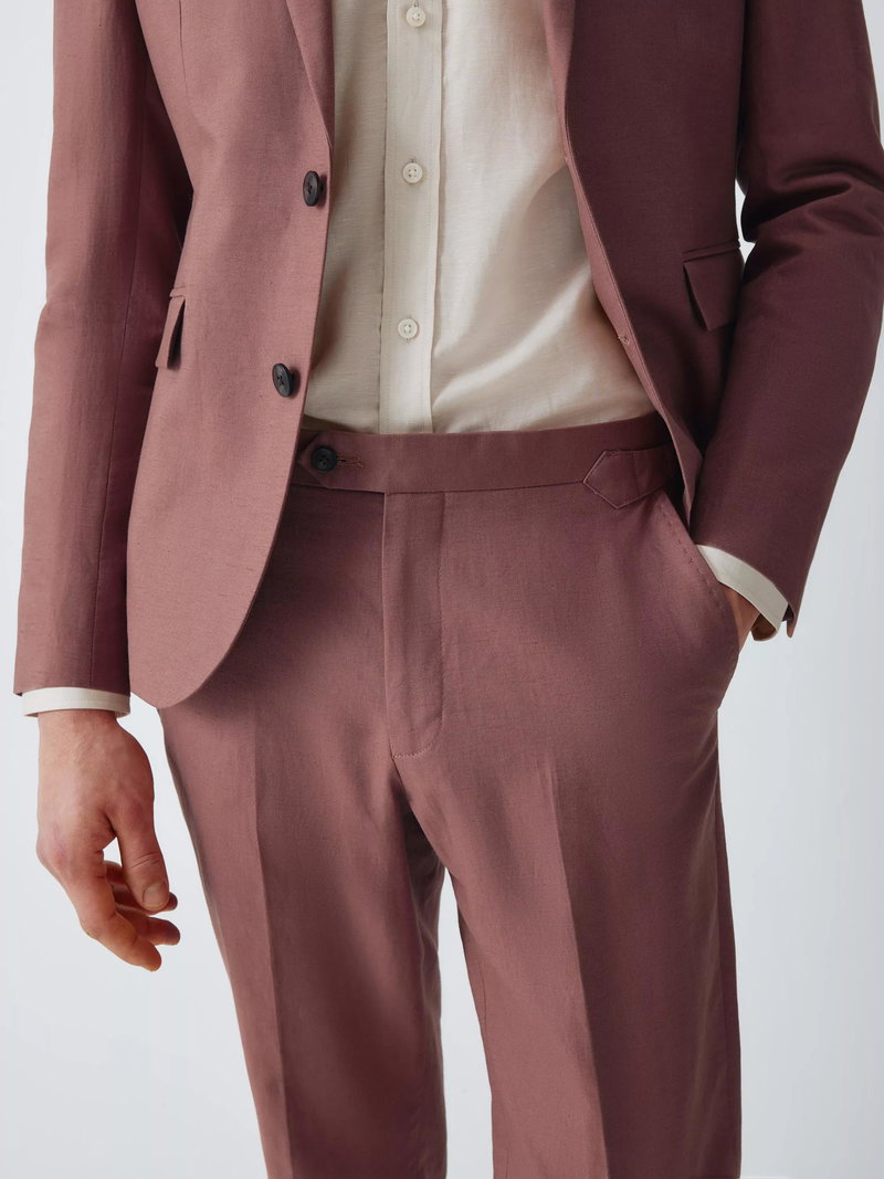 Linen Cotton Blend Slim Fit Suit Trousers