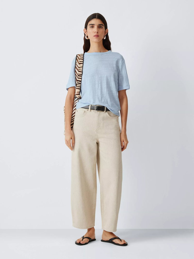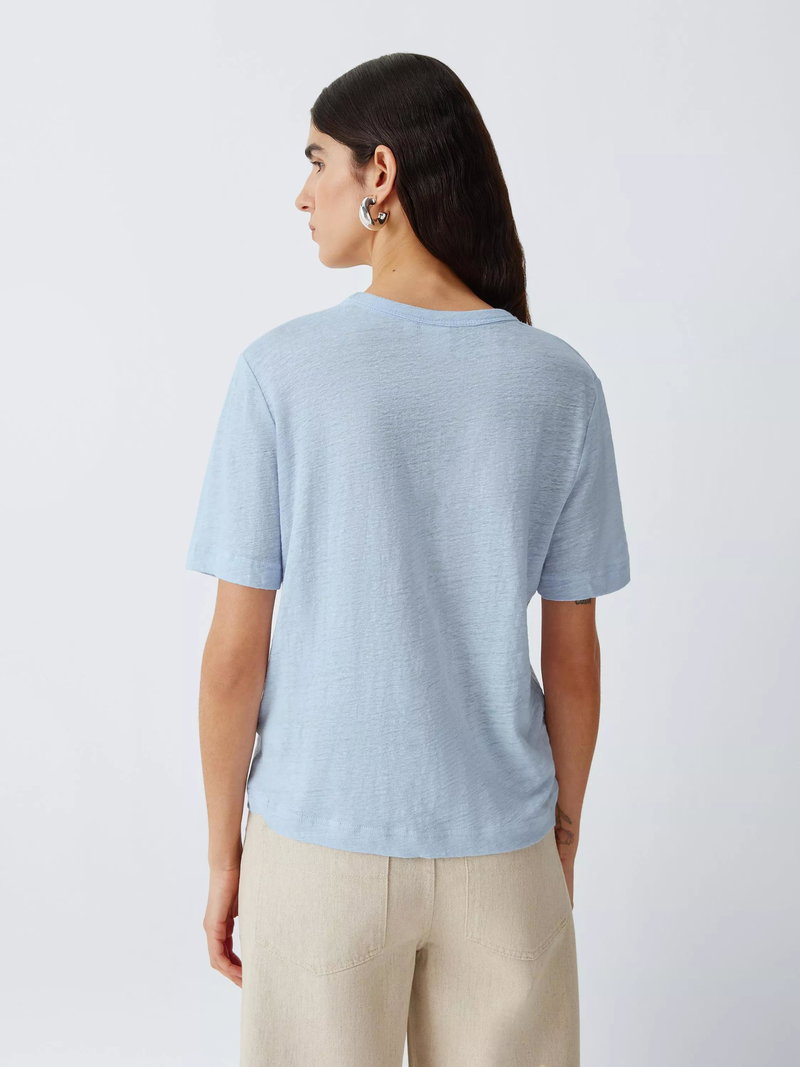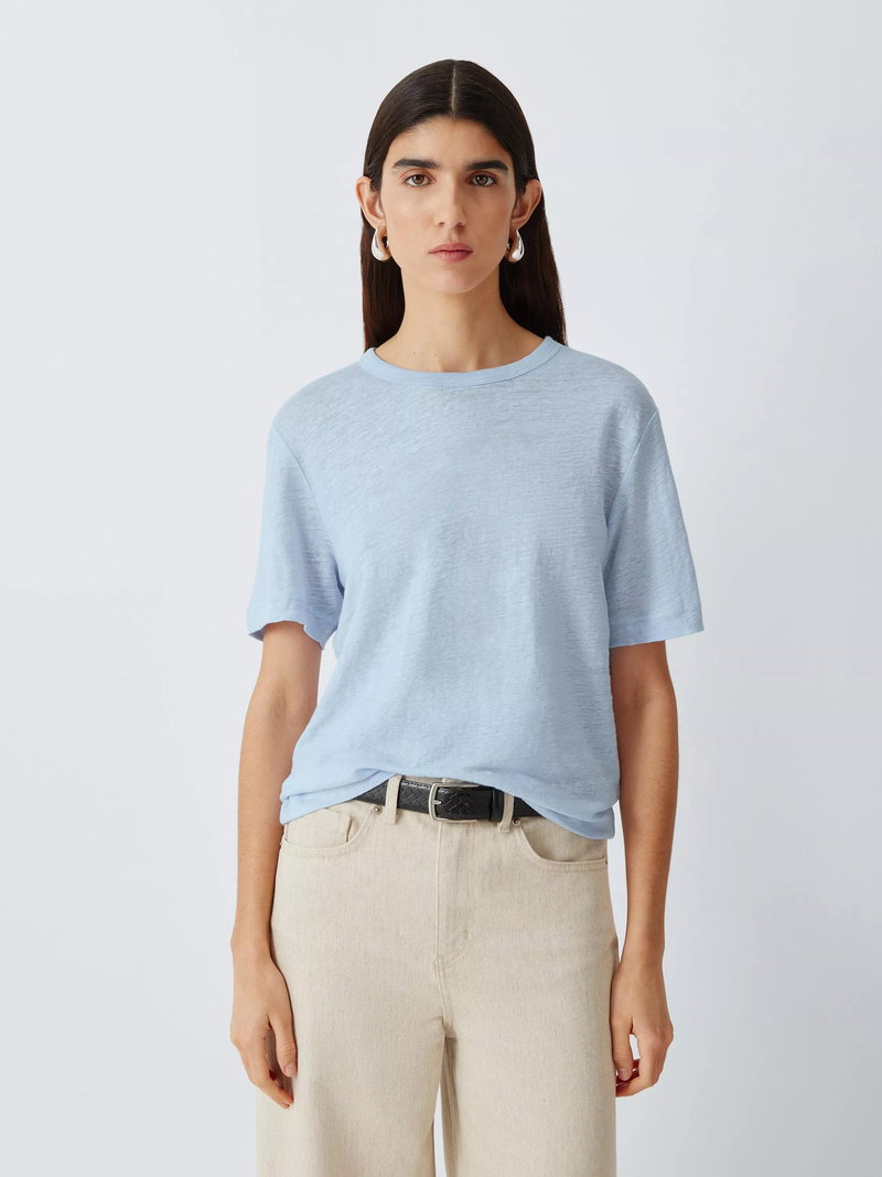 The slub-textured finish of this classic round neck T-shirt offers a tactile, relaxed look that elevates it beyond a basic tee. Cut with a slightly boxy, contemporary fit and neat short sleeves, it provides a versatile silhouette that pairs effortlessly with everything from tailored trousers to casual denim. Crafted from 100% linen, the fabric is celebrated for its exceptional breathability and moisture-wicking properties, making it an ideal choice for warmer days. The natural linen weave is remarkably hardwearing and develops a softer, more supple character with every wash.