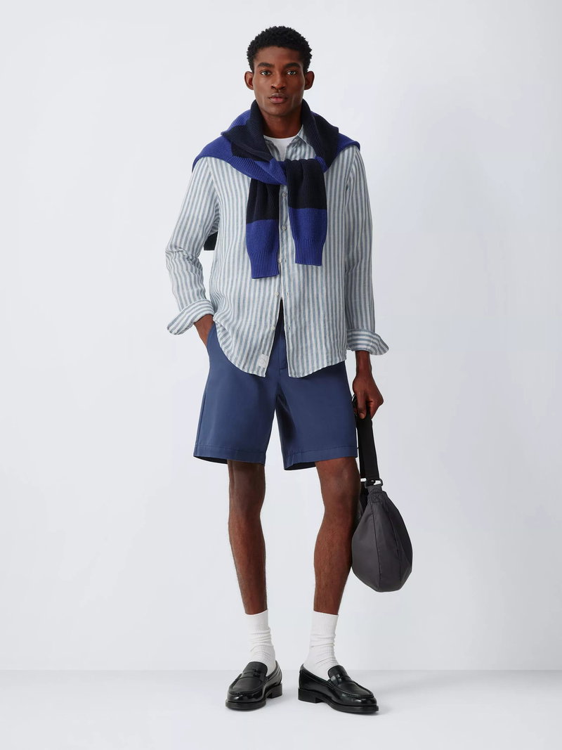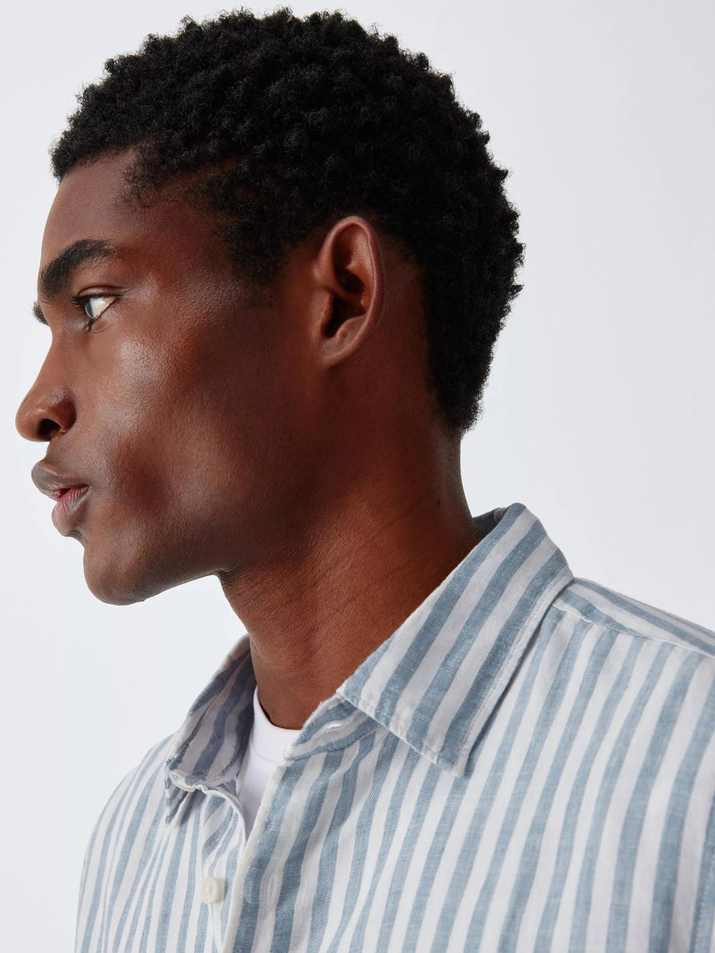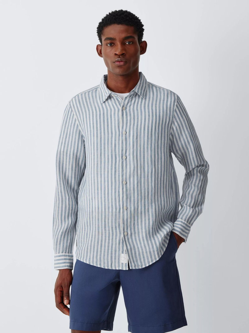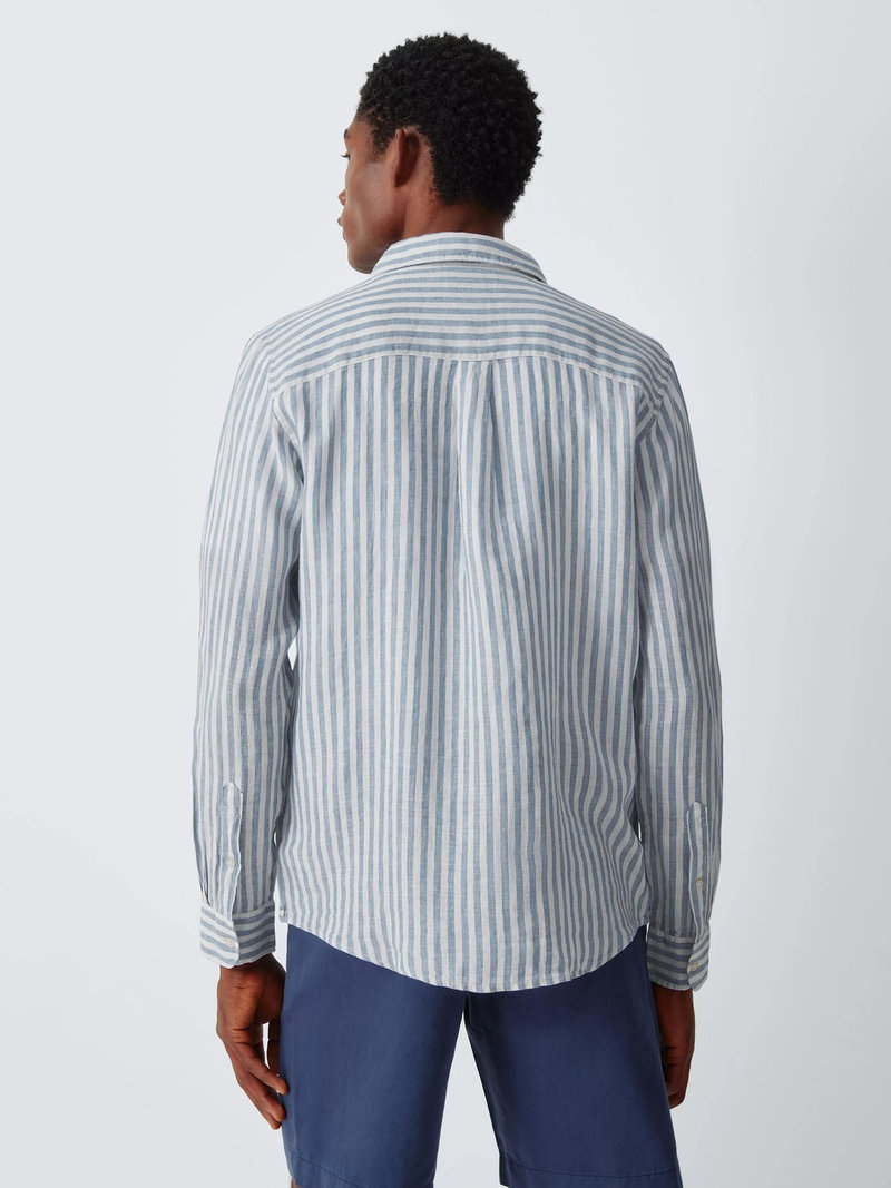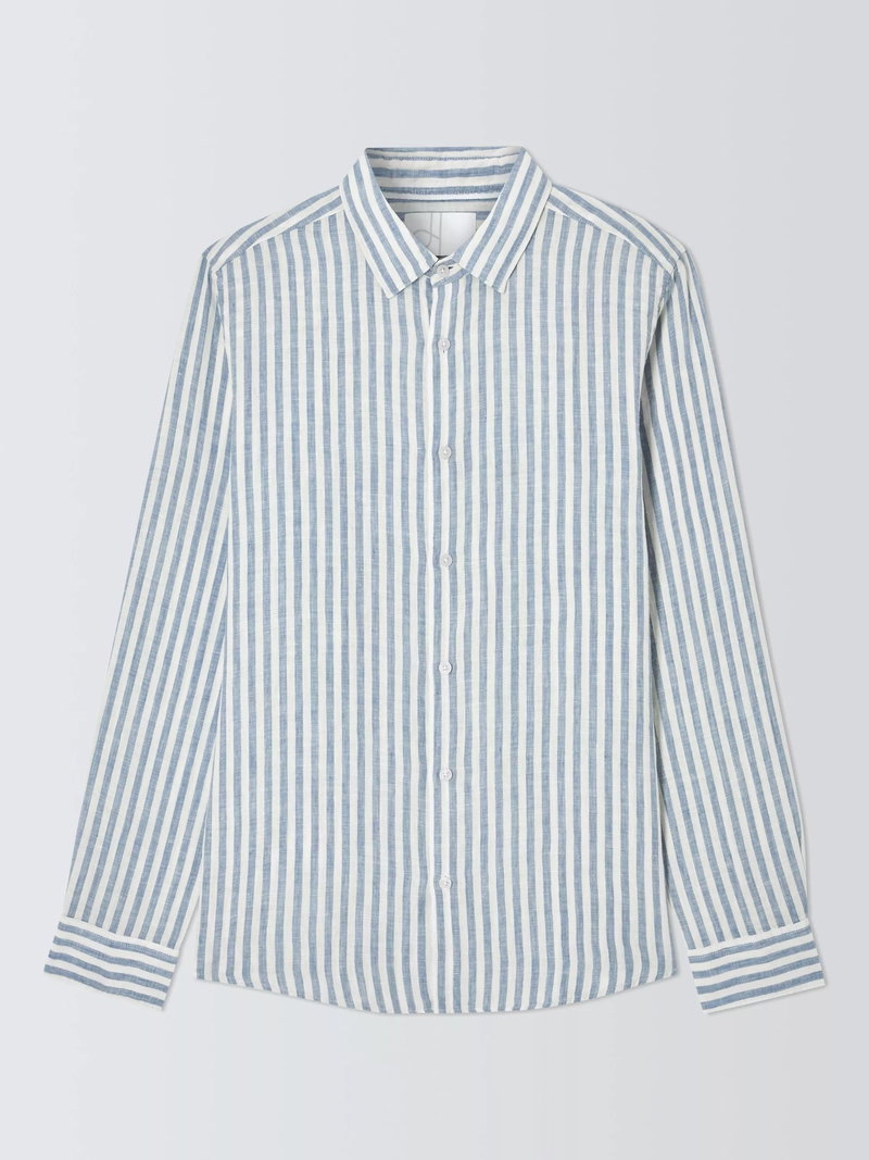 Crafted from lightweight linen, this shirt features a vertical stripe pattern. The fabric is celebrated for its exceptional breathability and naturally cooling properties. The distinct slub texture of the linen weave adds a tactile dimension while ensuring the garment remains durable and crisp. Finished with buttoned cuffs, a classic pointed collar and a curved hem, this versatile staple is designed for comfort and longevity.