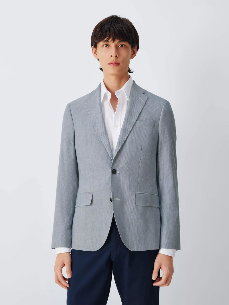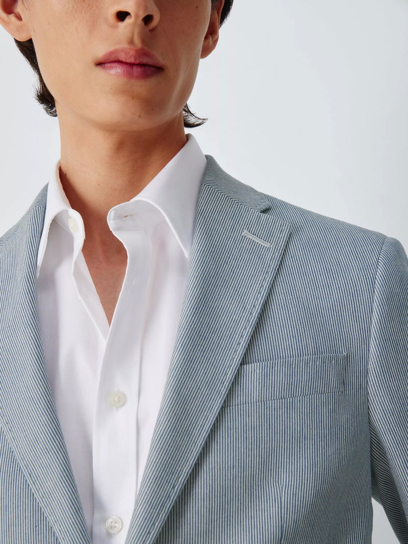 Micro Stripe Cotton Blend Regular Fit Blazer, Blue/White