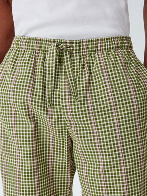 Organic Cotton Check Pyjama Shorts, Blue Navy