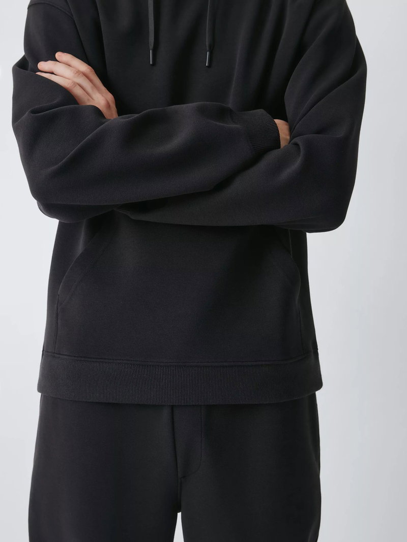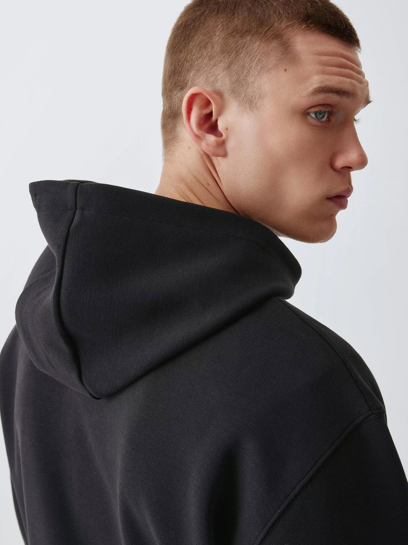 Elevate your casual wardrobe with this sophisticated piqué hoodie, defined by its unique textured knit that offers a refined alternative to standard jersey fabric. This piqué knit provides enhanced durability and a structured silhouette that maintains its shape throughout the day. Crafted from a cotton blend, the fabric feels soft against the skin while offering a subtle stretch for unrestricted movement. The breathable cotton ensures all-day comfort. Complete with a spacious kangaroo pocket and adjustable drawcords, this hoodie balances functional utility with a clean, minimalist look.