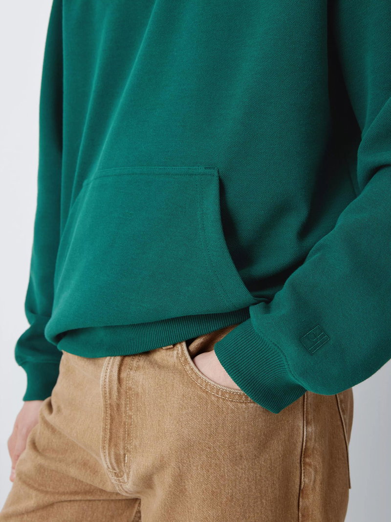 Elevate your casual wardrobe with this sophisticated piqué hoodie, defined by its unique textured knit that offers a refined alternative to standard jersey fabric. This piqué knit provides enhanced durability and a structured silhouette that maintains its shape throughout the day.