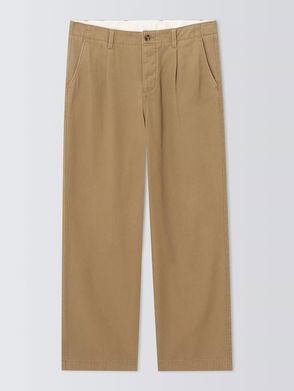 Pleat front chinos in our modern baggy fit, styled with single pleats at the front. Designed with back patch pockets, slant entry pockets, zip fly fastening and belt loops. Team with anything from a tucked-in shirt to a hoodie or a cotton t-shirt.