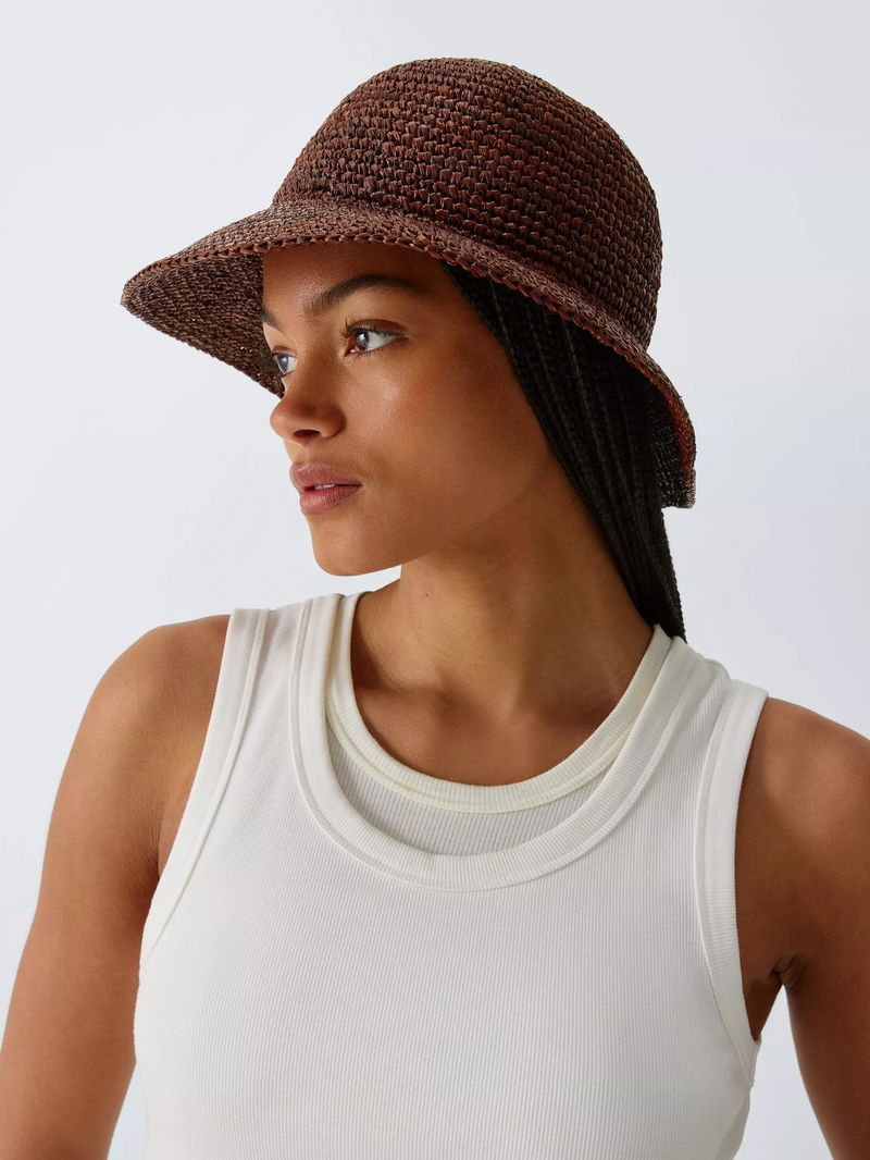Raffia Bucket Hat, Chocolate