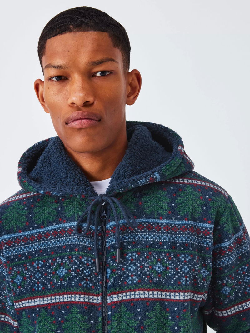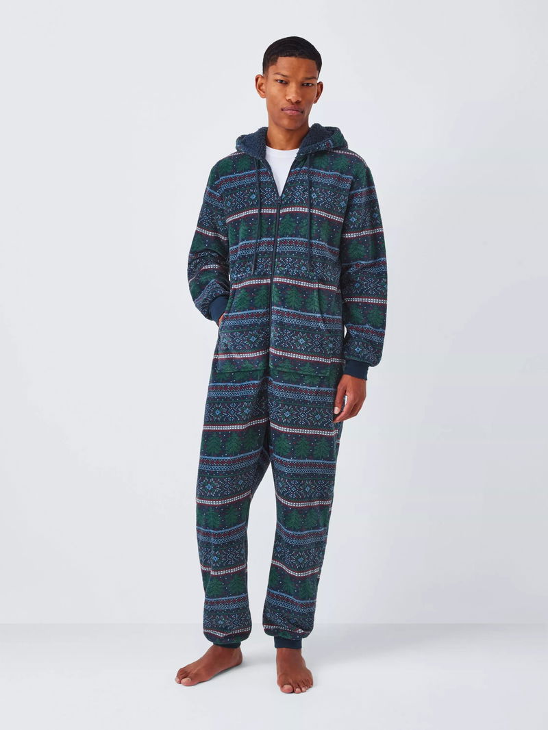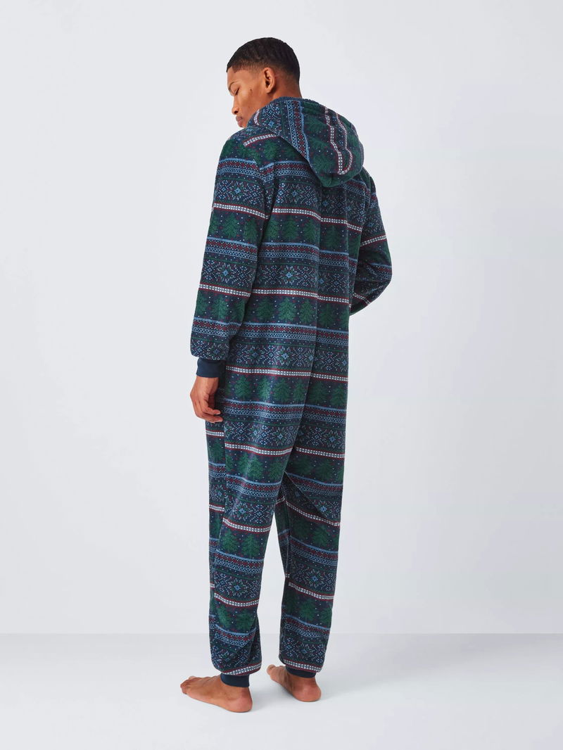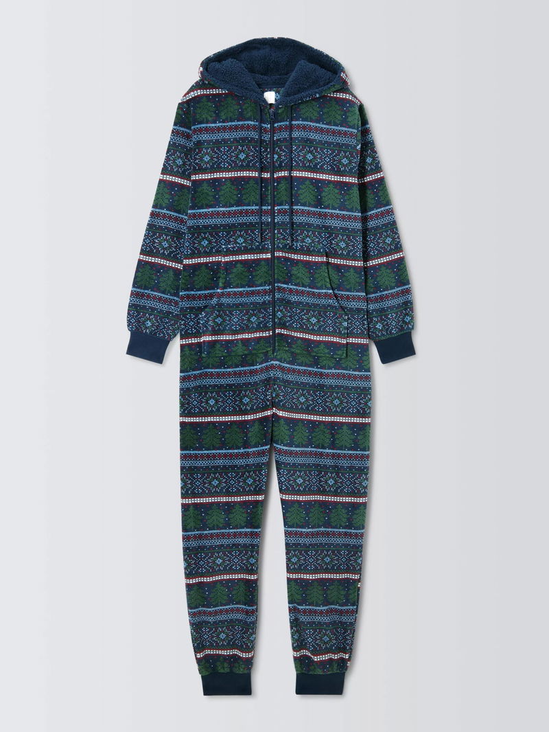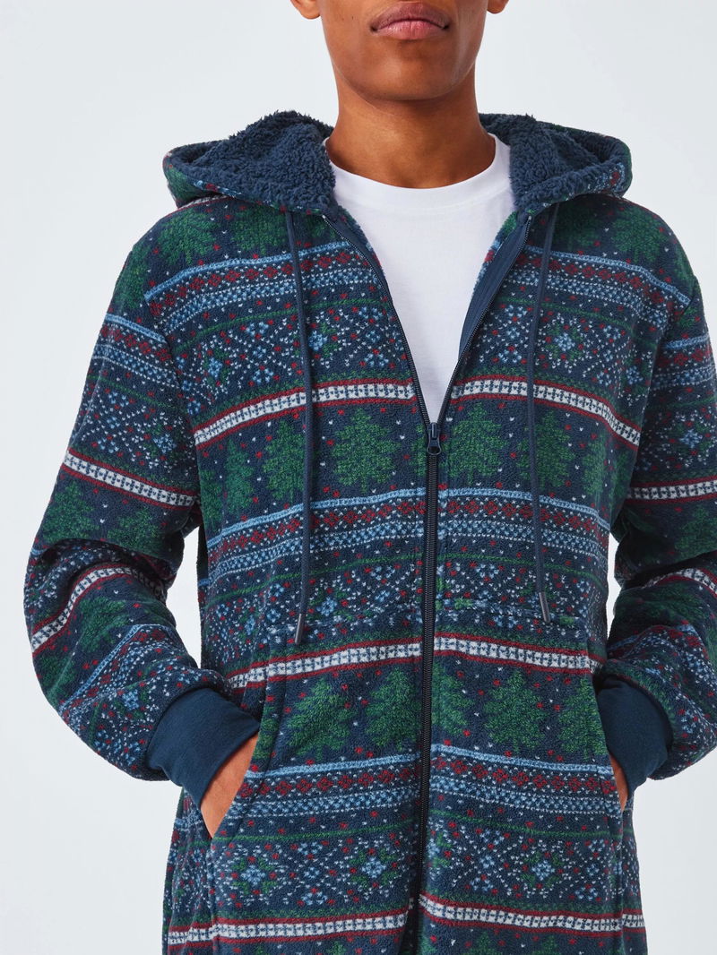 Recycled Fairisle Christmas Hooded Onesie, Blue Navy