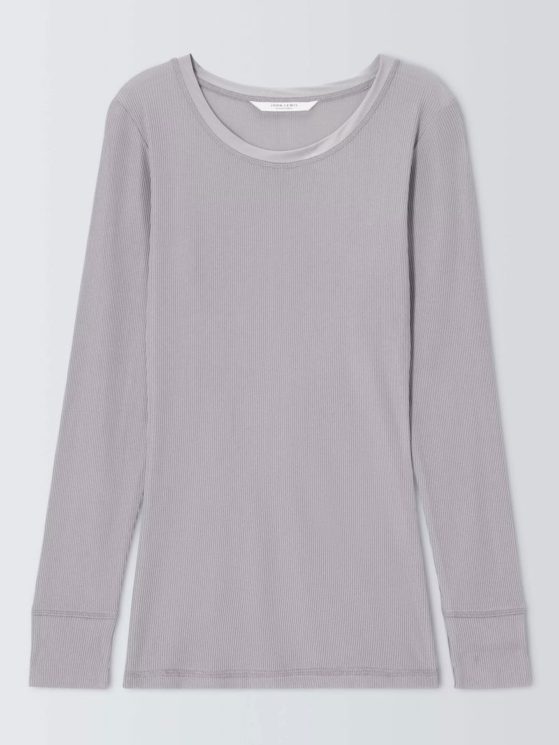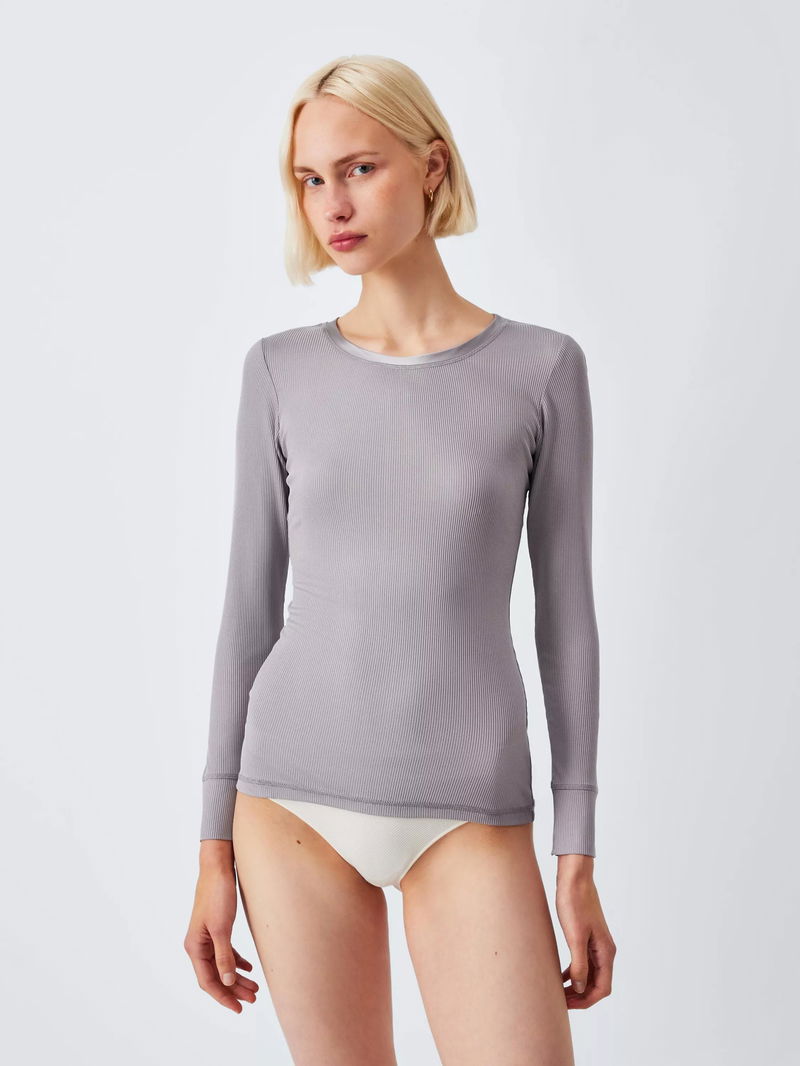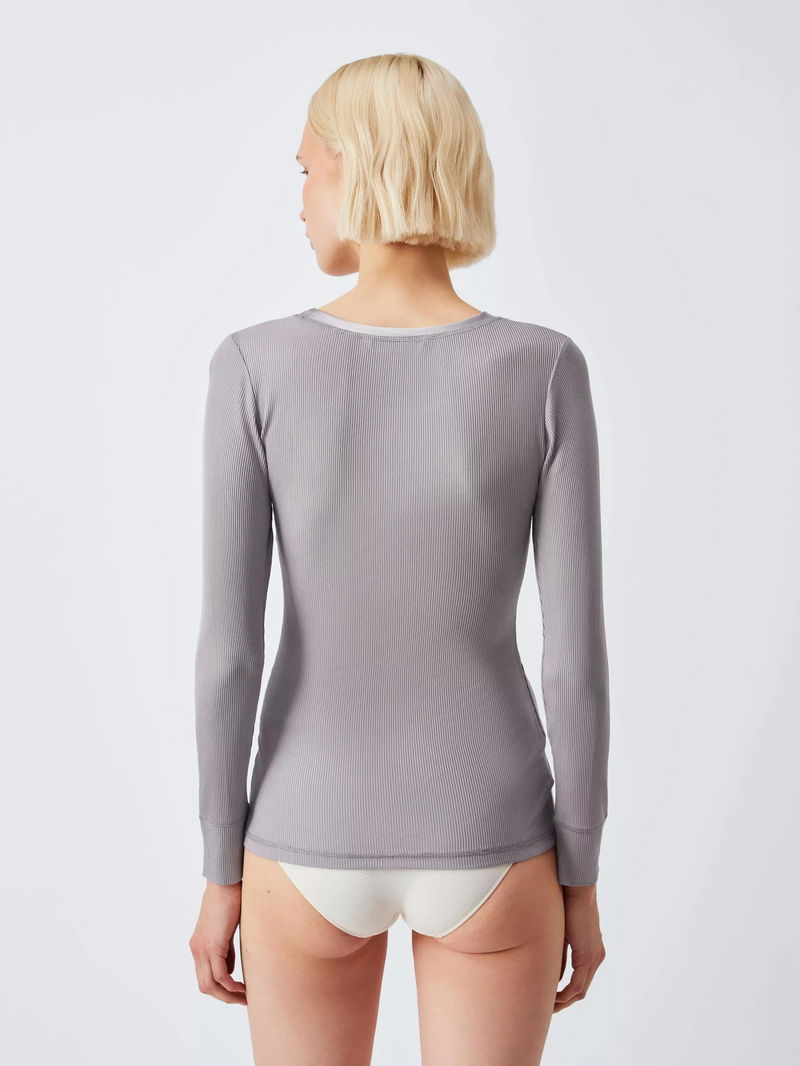 Ribbed Silk Thermal Long Sleeve Top, Grey