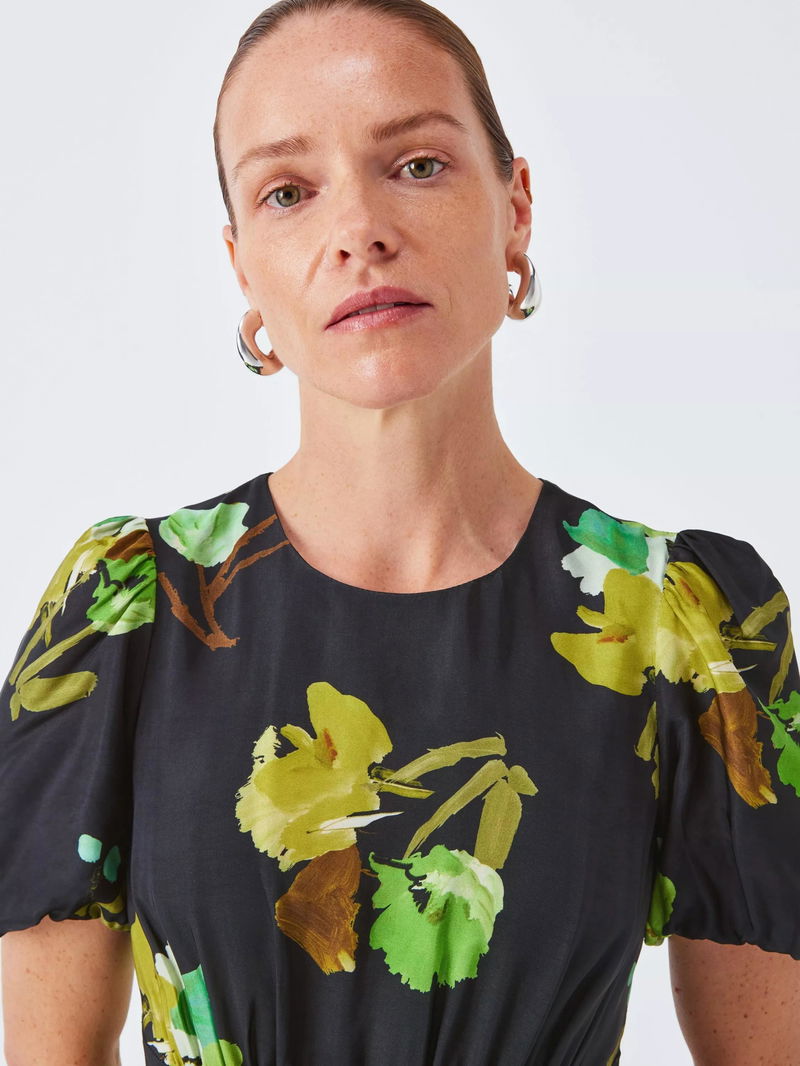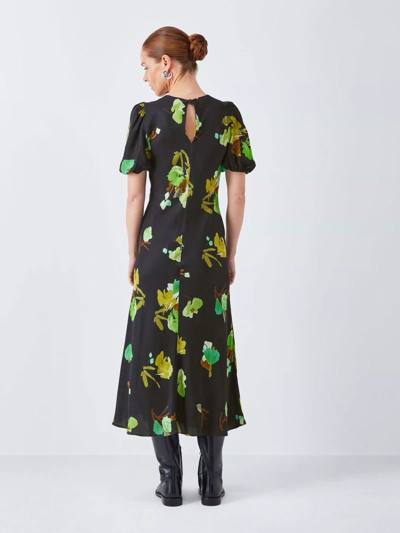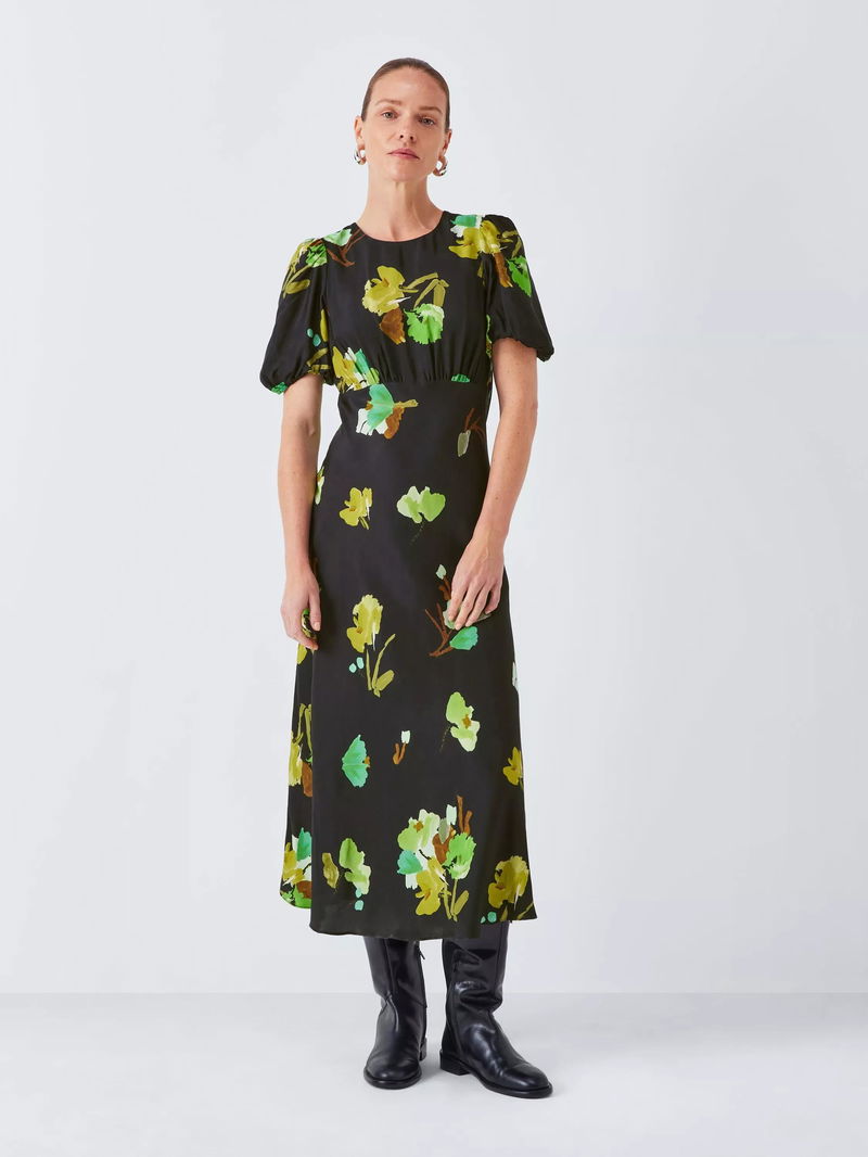 Short Sleeve Floral Midi Tea Dress, Black/Multi