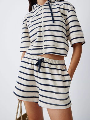 Featuring bold vertical stripes, these shorts are made from pure cotton for lightweight wear. The elasticated waistband with an adjustable drawstring ensures a secure fit. Pair with the matching beach shirt for a coordinated look.