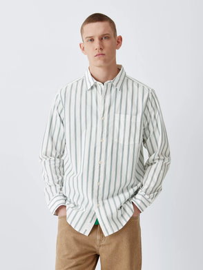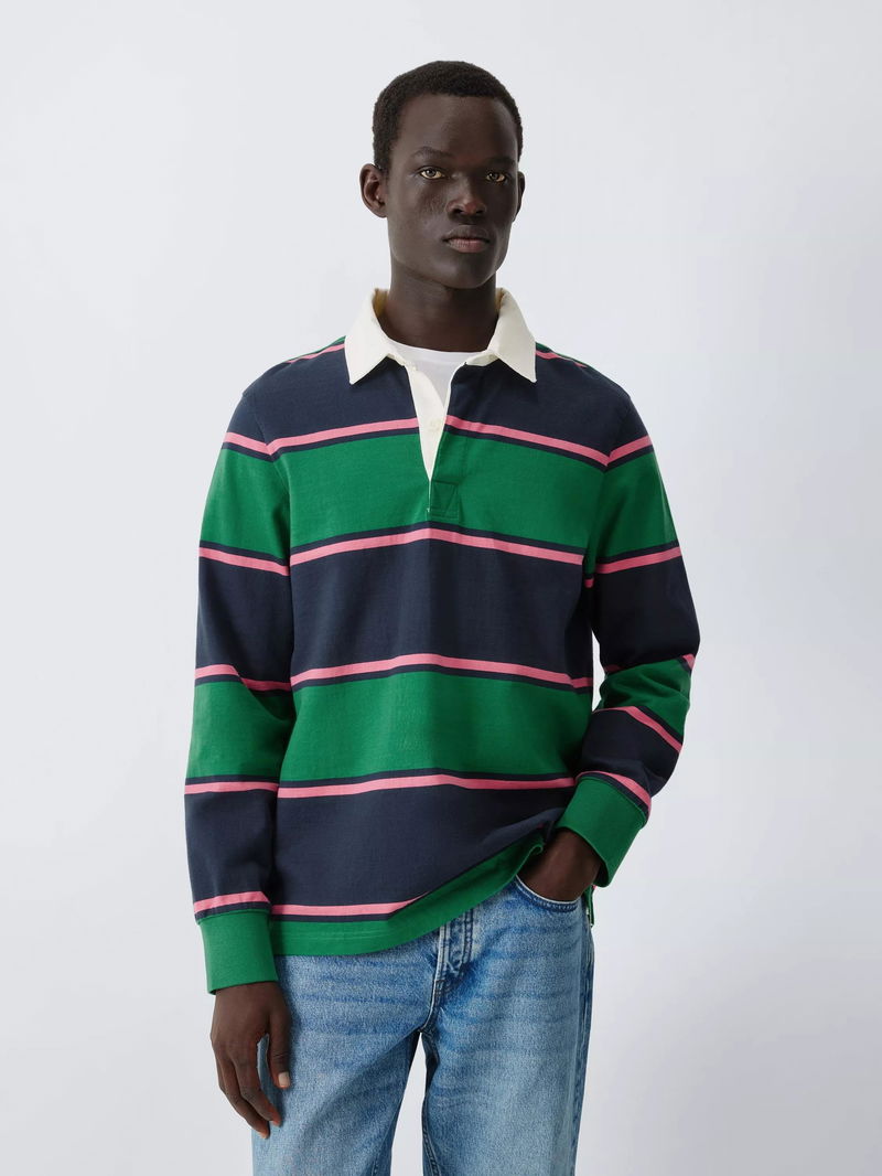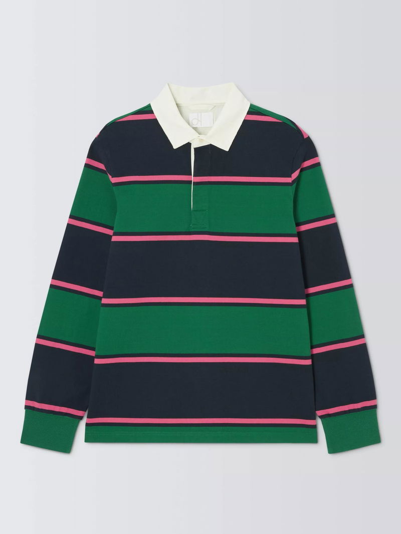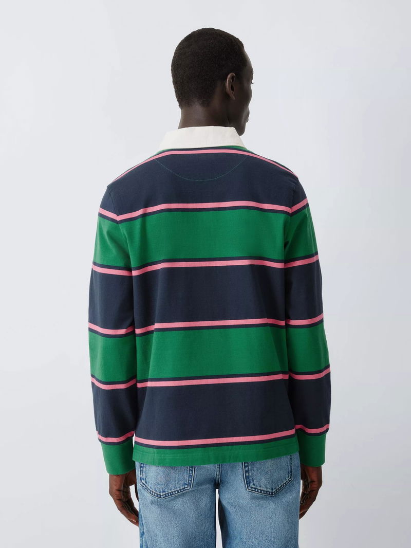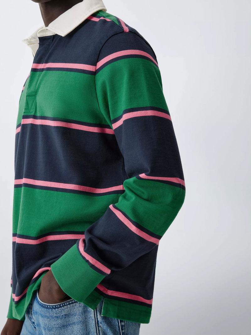 Striped Cotton Rugby Shirt, Ver Grn/ Egret
