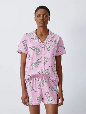 Tigers Button Through Long Pyjama Set, Green