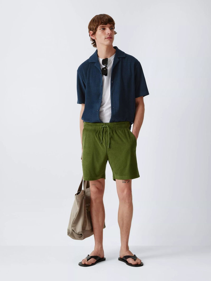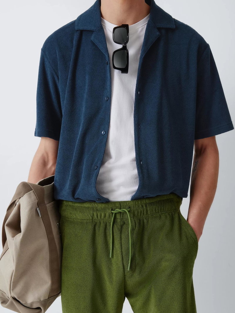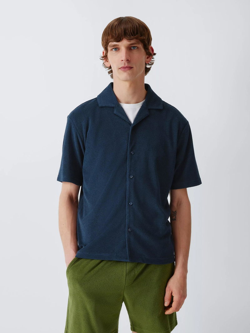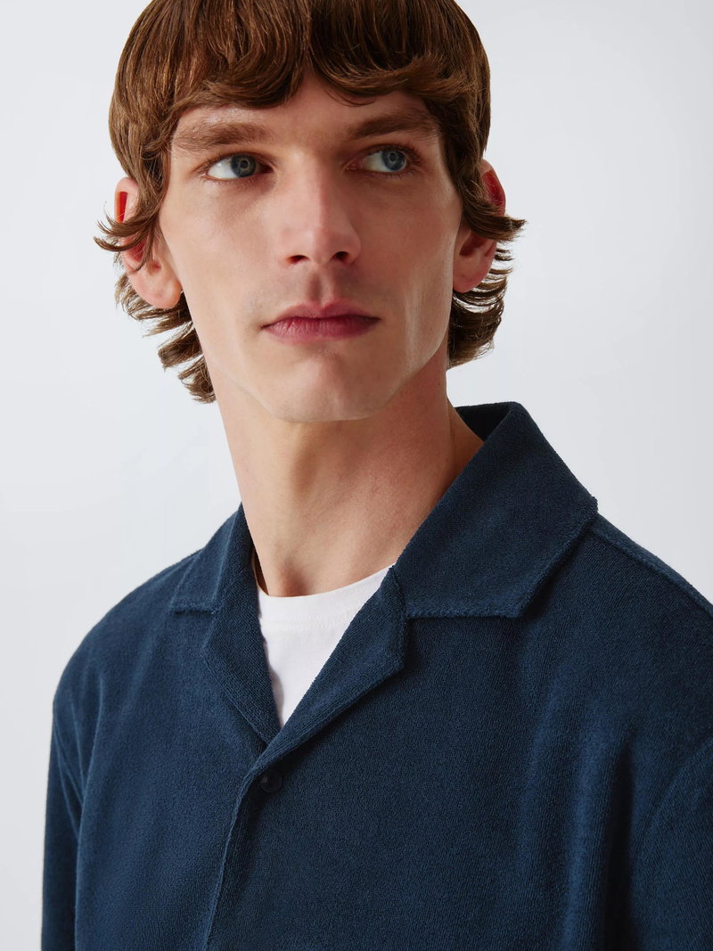 This short sleeve towelling shirt is a great summer hybrid, blending vintage Riviera style with function. Its plush terry cloth fabric is highly absorbent and breathable, making it perfect for post-swim wear or humid days.