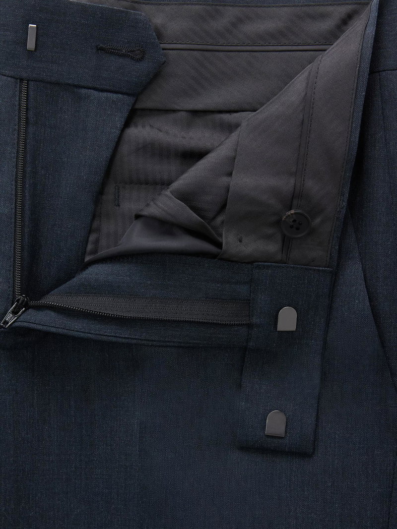 Woven in a machine-washable wool blend, these suit trousers are tailored to our regular fit specification and feature a mid-rise and a straight leg. Inside, the trousers are lined with black pocketing.