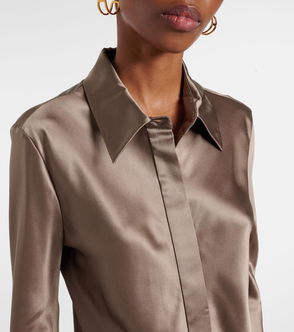 Athena Geometric-Stripe Stretch Silk-Blend Blouse