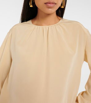 Top, Wool-blend tweed, Pleated, Side slits, Button-fastening keyhole at back, Mid-weight, non-stretchy fabric.
