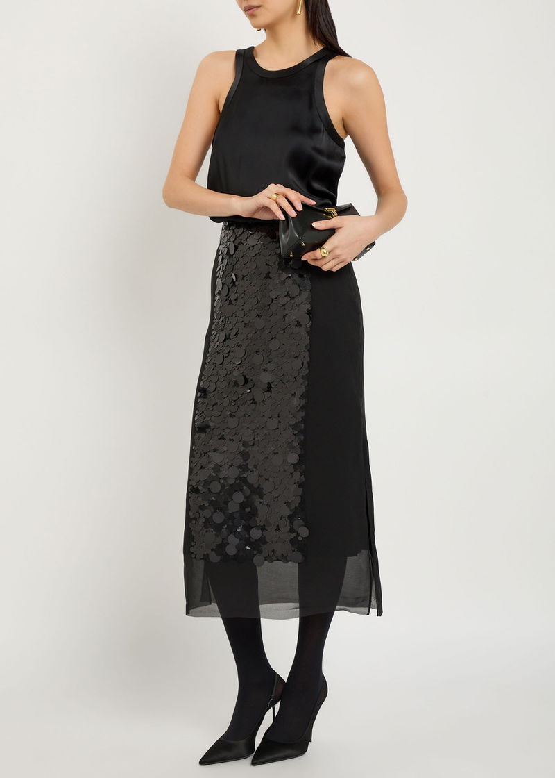 Cambo Sequin-Embellished Voile Midi Skirt