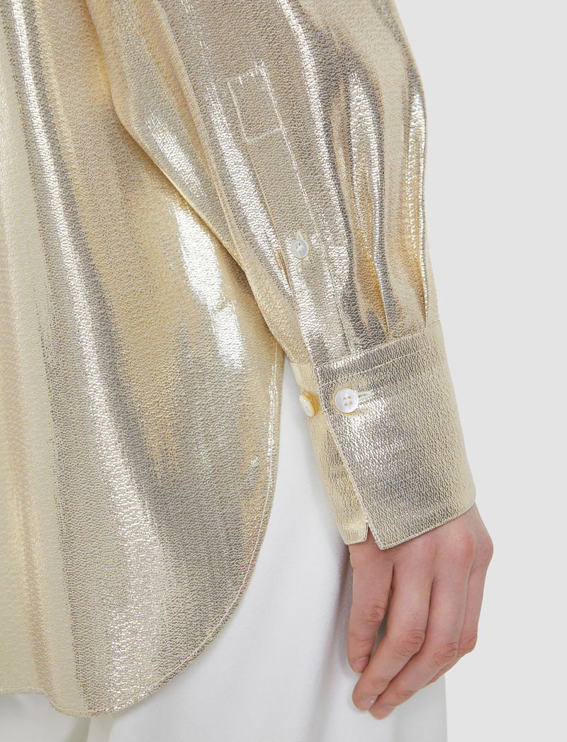 The Capri Lamé Silk Blouse is a relaxed fit blouse, crafted from a luxurious blend of silk and metallic fibres in gold and silver.