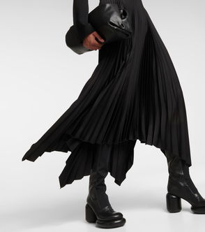 The Knit Weave Plissé Dera Dress is an A-line midi dress crafted from a crepe yarn which has a silky and compact hand feel. This style features a slim fit, knitted top half, which is attached to a fluid, sunray pleated skirt.