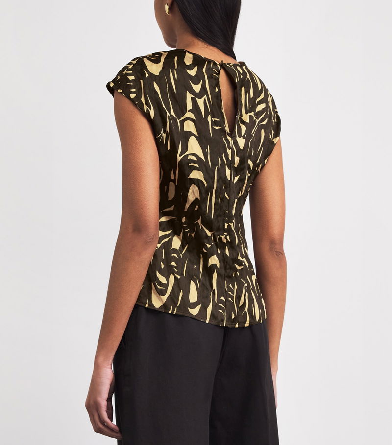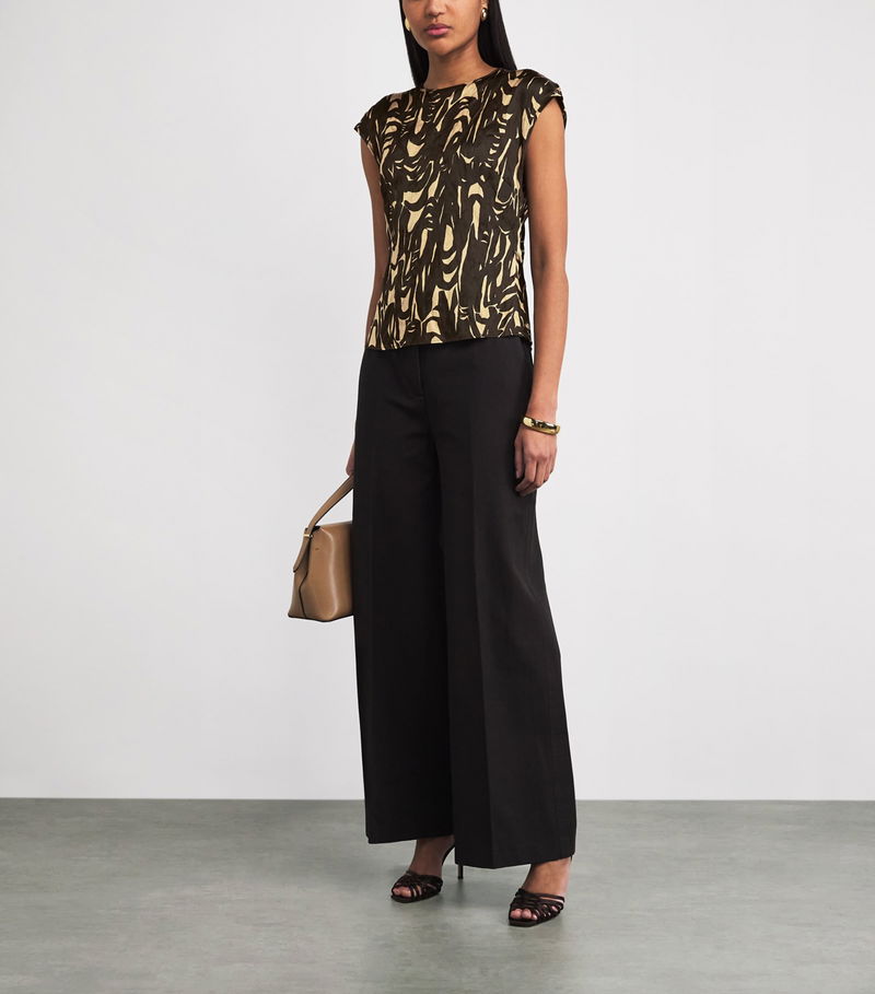 Joseph may be most known for its minimalist leanings, but the Zeyna top proves the British brand can transcend its sartorial expertise to bold creations. Crafted from a blend of metallic and viscose fibres, the piece is imbued with a crinkled texture, adding a relaxed character elevated by a ribbon print – inspired by the skyline of Morocco.