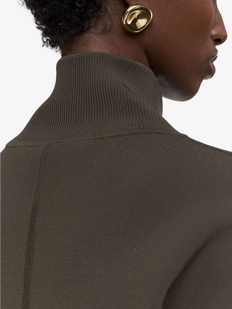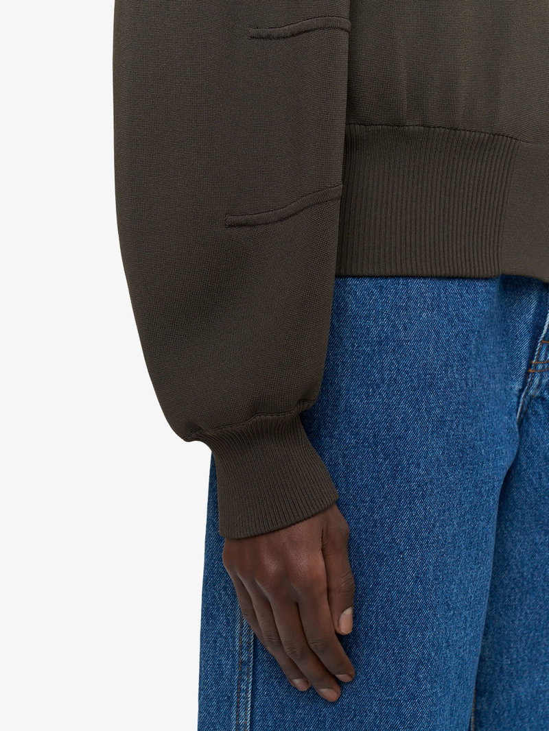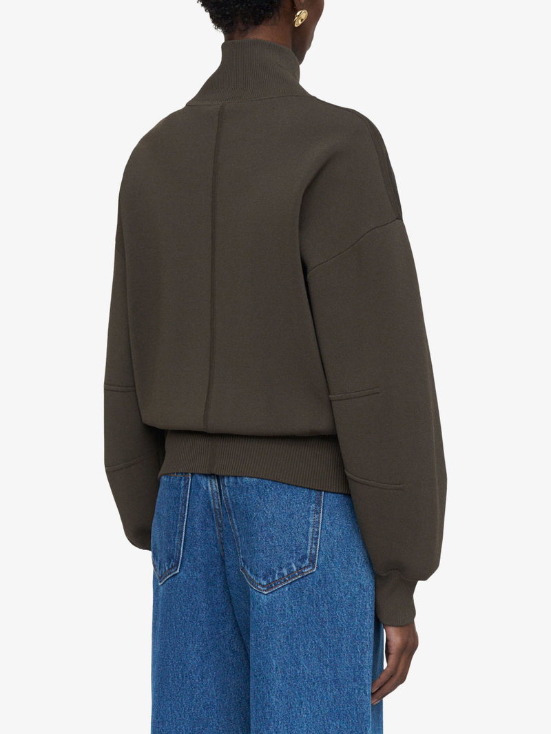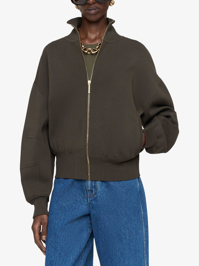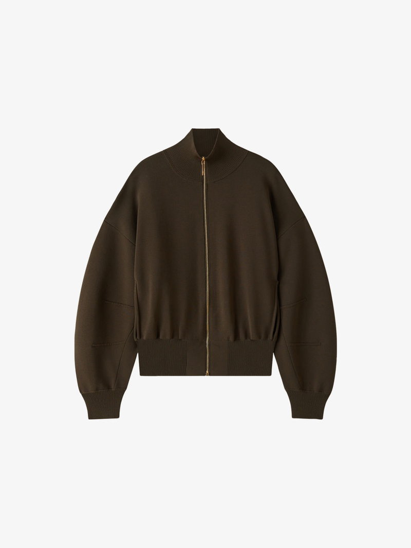 Sable Funnel-Neck Knitted Bomber Jacket