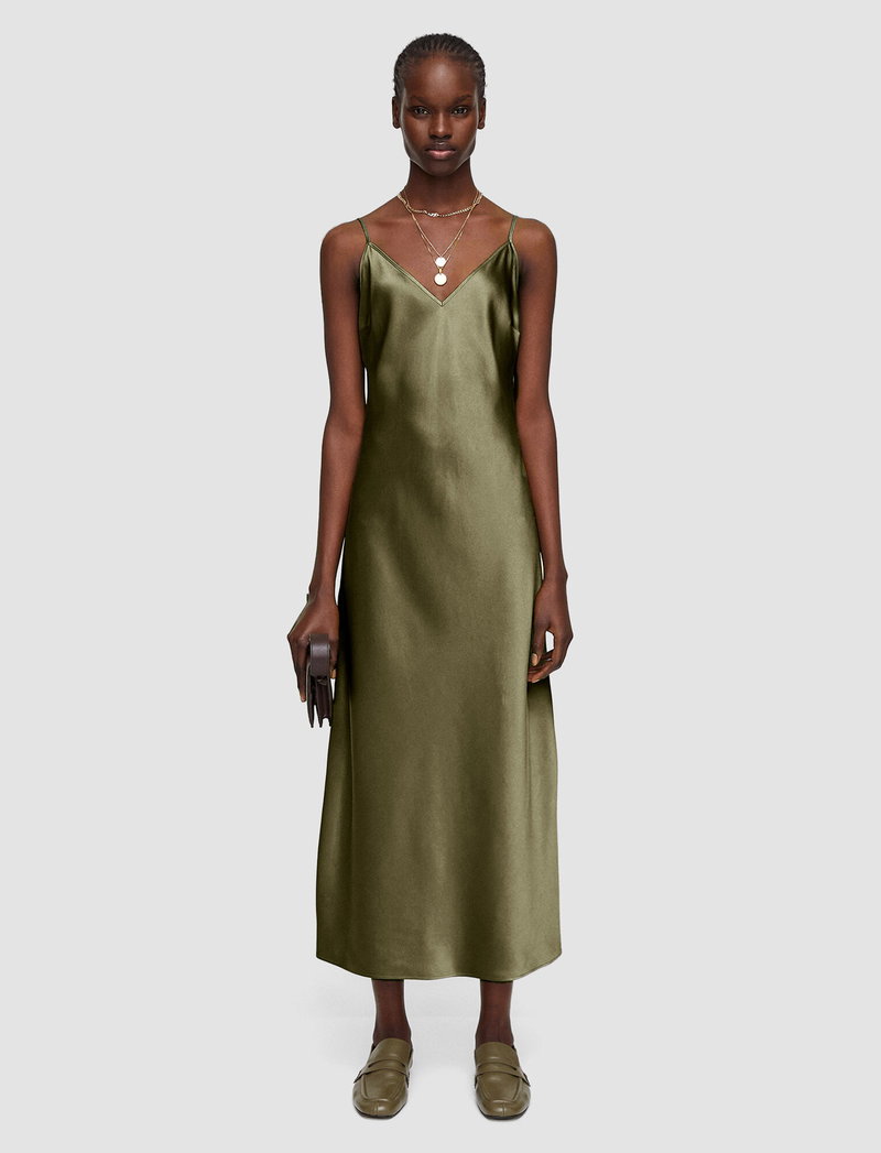 The Silk Satin Clea Dress is a bias cut slip dress, fitting slightly slimmer across the top half the body and falls loosely from the hips. Crafted from a lustrous silk which is rich in colour, this dress has a soft feel and a seamless, fluid finish.