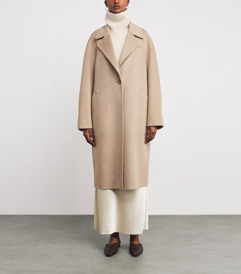 Here, the label opts for a double-face wool-cashmere composition and extends the same treatment to craft the Franco coat, which falls to a relaxed fit.