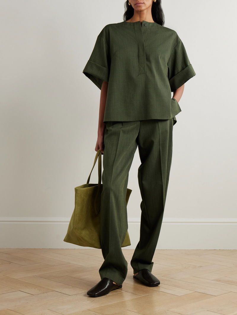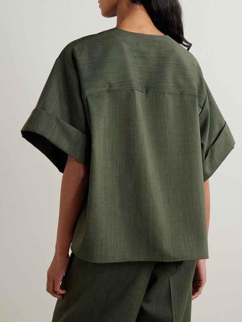 Joseph's 'Yani' blouse is tailored from lightweight wool-twill with boxy, kimono-inspired sleeves and a half-placket. Wear yours with the matching 'Zen' pants.