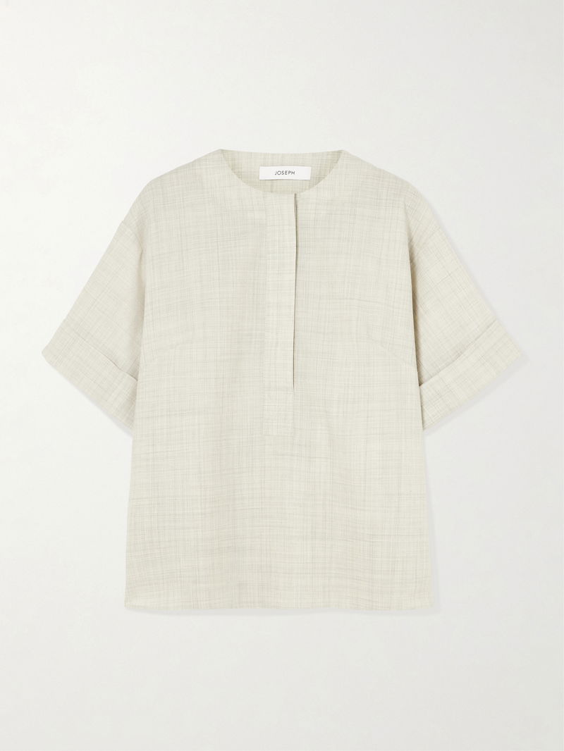 Joseph's 'Yani' blouse is tailored from lightweight wool-twill with boxy, kimono-inspired sleeves and a half-placket. Wear yours with the matching 'Zen' pants.