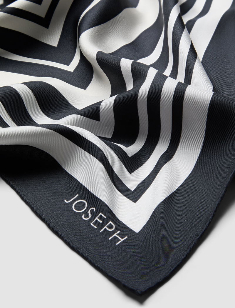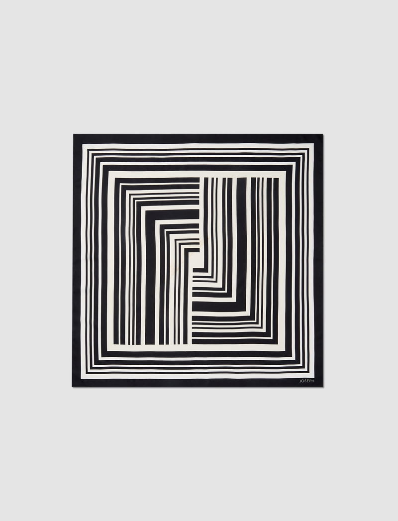 Crafted from silk with a lustrous finish, this versatile scarf features a striped motif in black and ivory. An elegant accessory designed to elevate everyday looks, sharpen classic tailoring, or simply deliver a pop of print.
