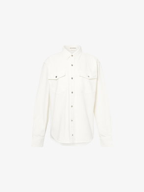 From casualwear to tailoring, JW Anderson marries modernity with style in every design. This classic shirt is crafted from linen into a cropped silhouette with printed logos on the contrasting band.