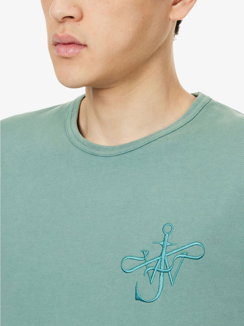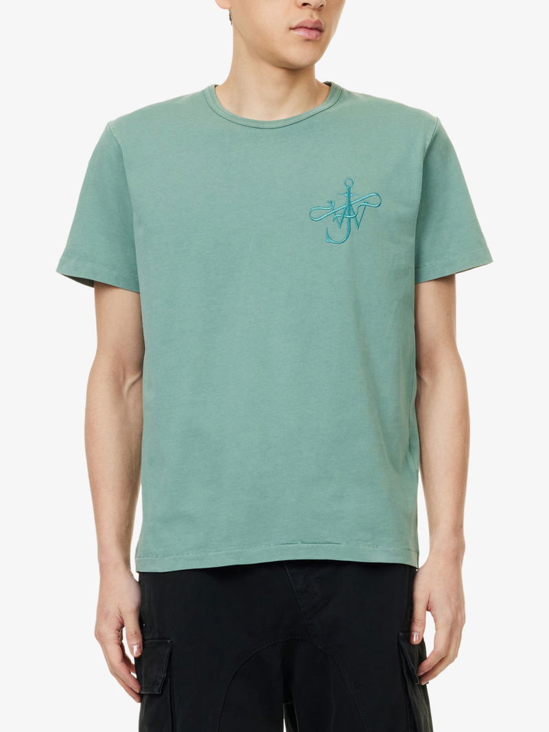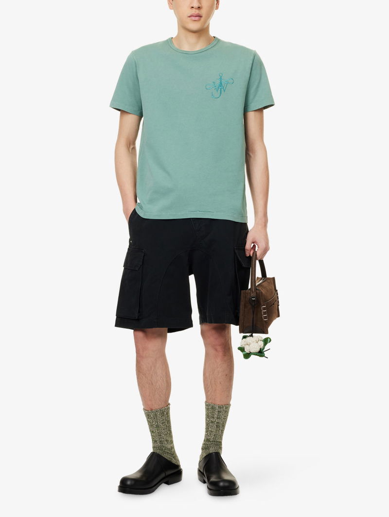 JW Anderson cotton T-shirt. Pulls on. Relaxed fit, round neck, short sleeves, anchor ribbon embroidery.