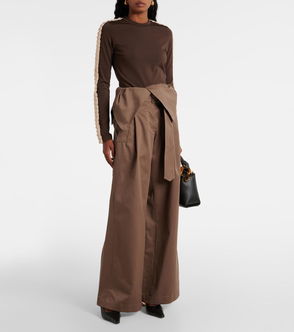 We know JW Anderson best for its fresh iterations of classic silhouettes, and amongst the striking patterns, androgynous silhouettes and glimmering embellishments of SS24, the designer does create some pieces to ground the glamour. That's the role that these time-transcending trousers play. The pair's outline goes completely uninterrupted from the mid-rise waistband down the wide legs, apart from an exaggerated panel at the side.