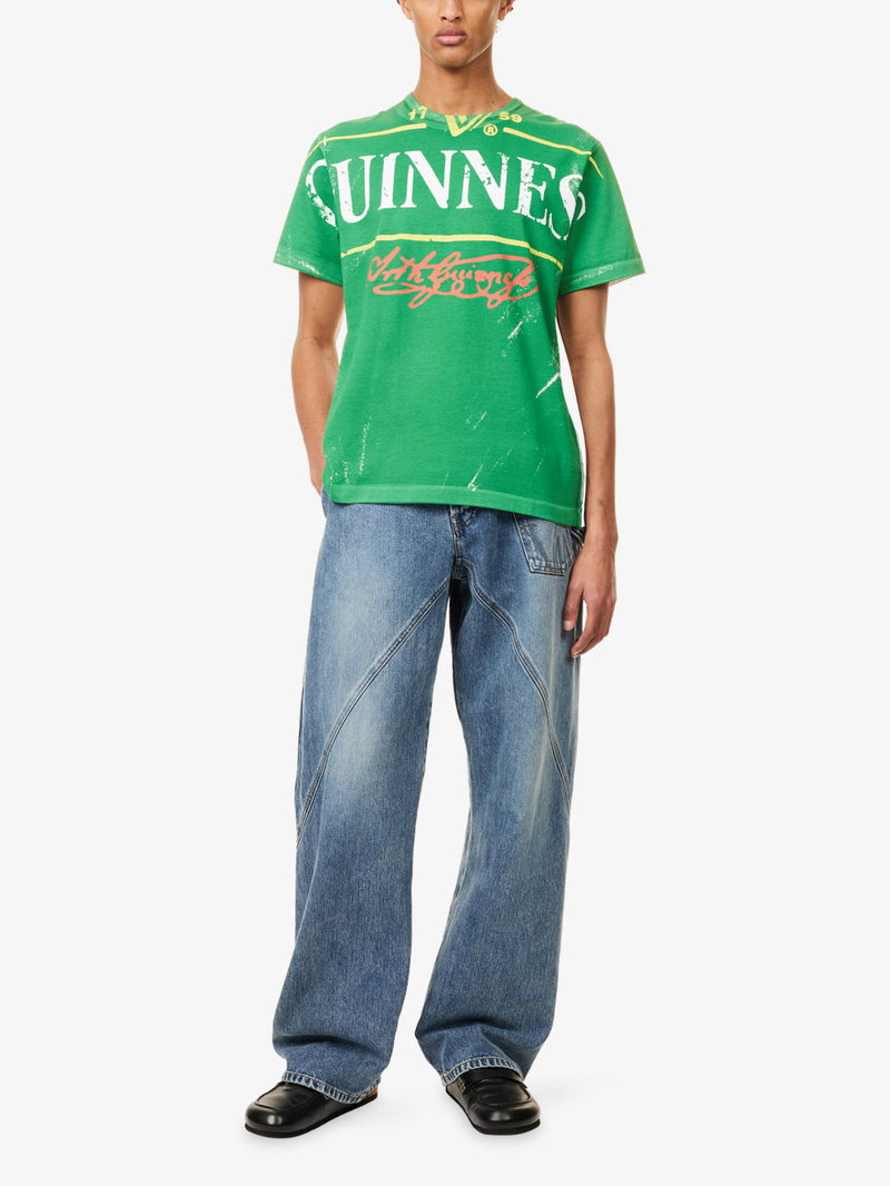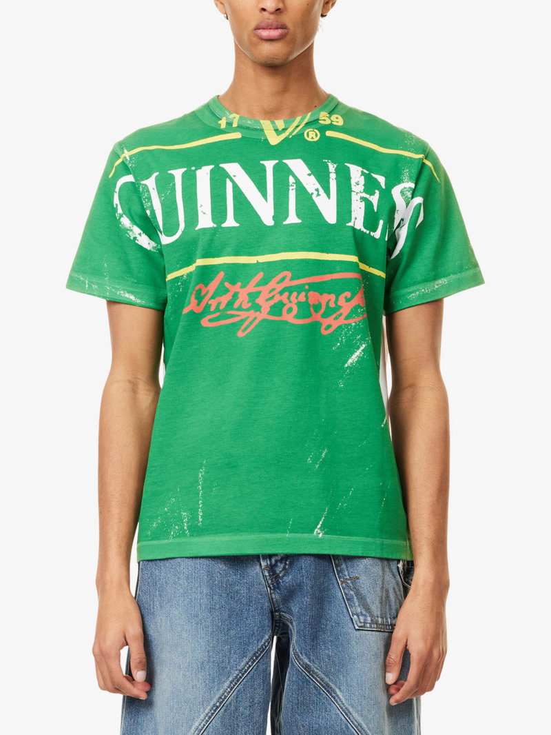 JW Anderson x Guinness cotton-jersey T-shirt. Regular fit, crewneck, short sleeves, brand print at front, contrast back, logo embroidered at back, jersey texture. .- 100% cotton