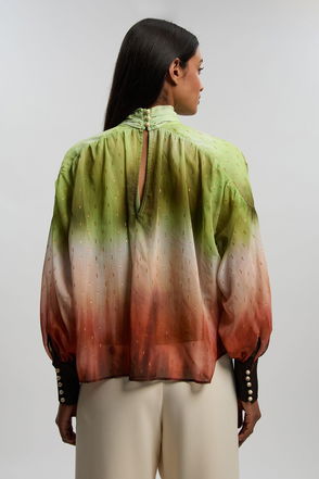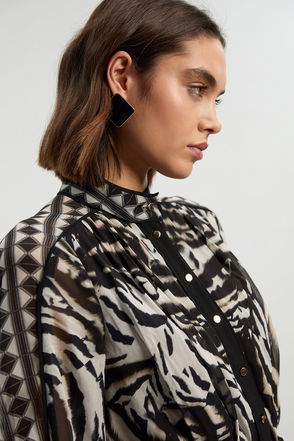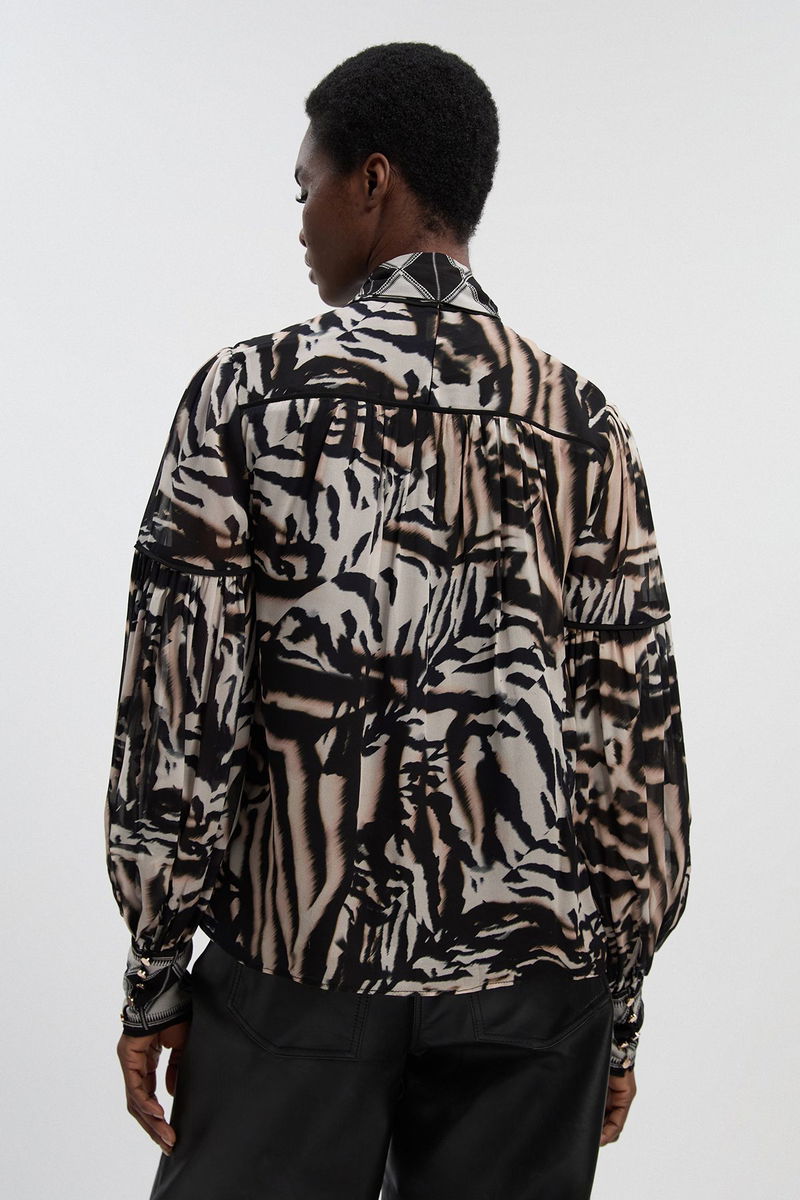 Animal Print Viscose Georgette Balloon Sleeve Woven Blouse