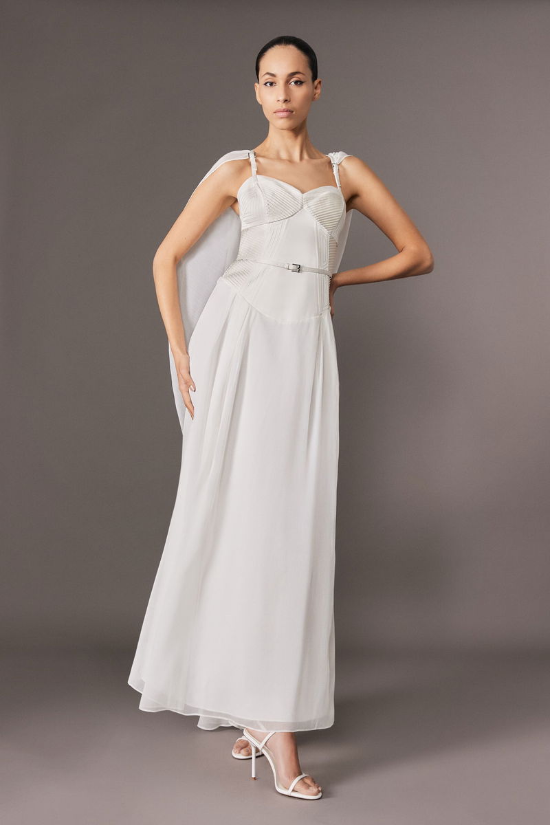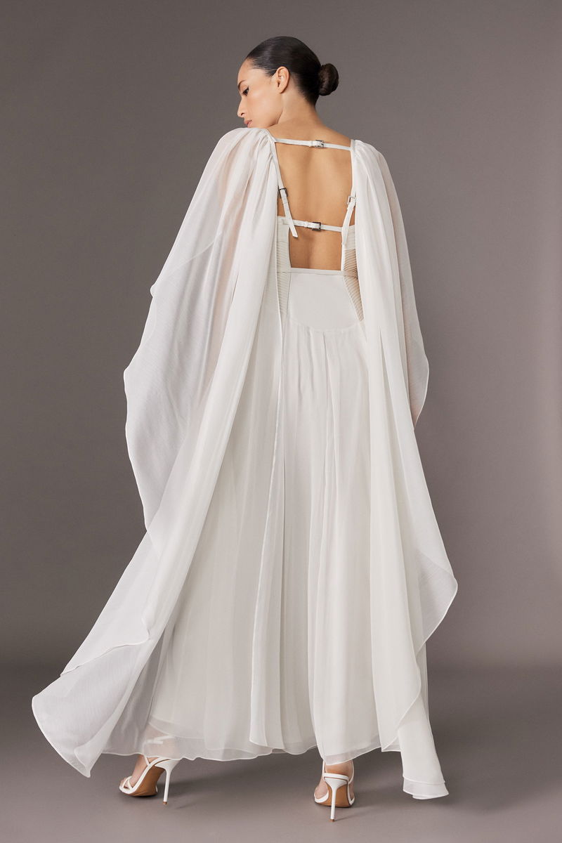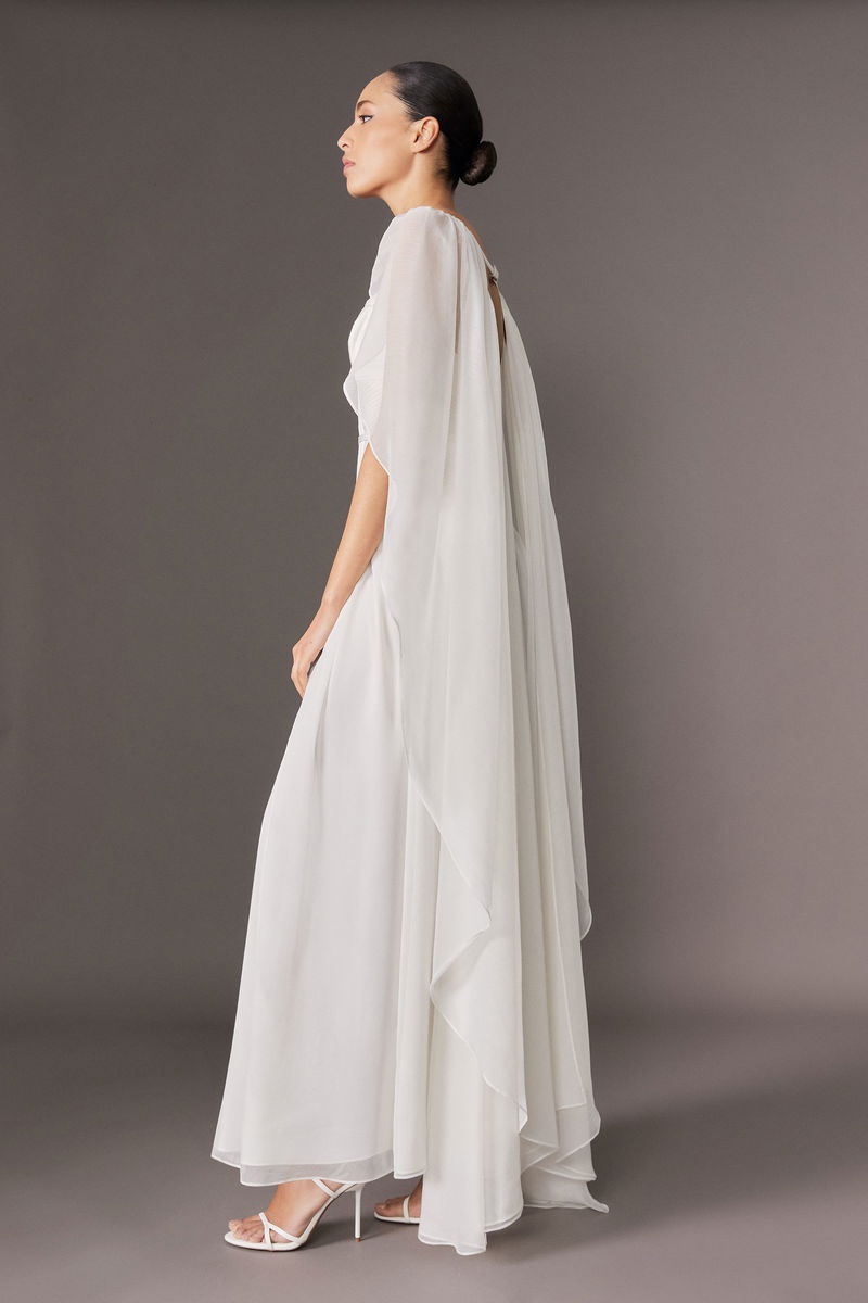 Archive Collection - Petite Corset Detail Georgette Cape Woven Maxi Dress