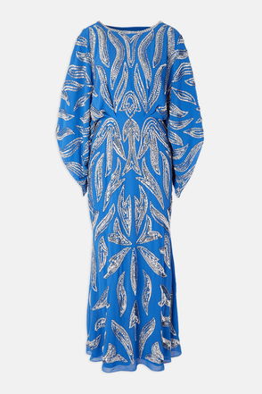 Baroque Embroidered Cape Sleeve Twill Woven Maxi Dress